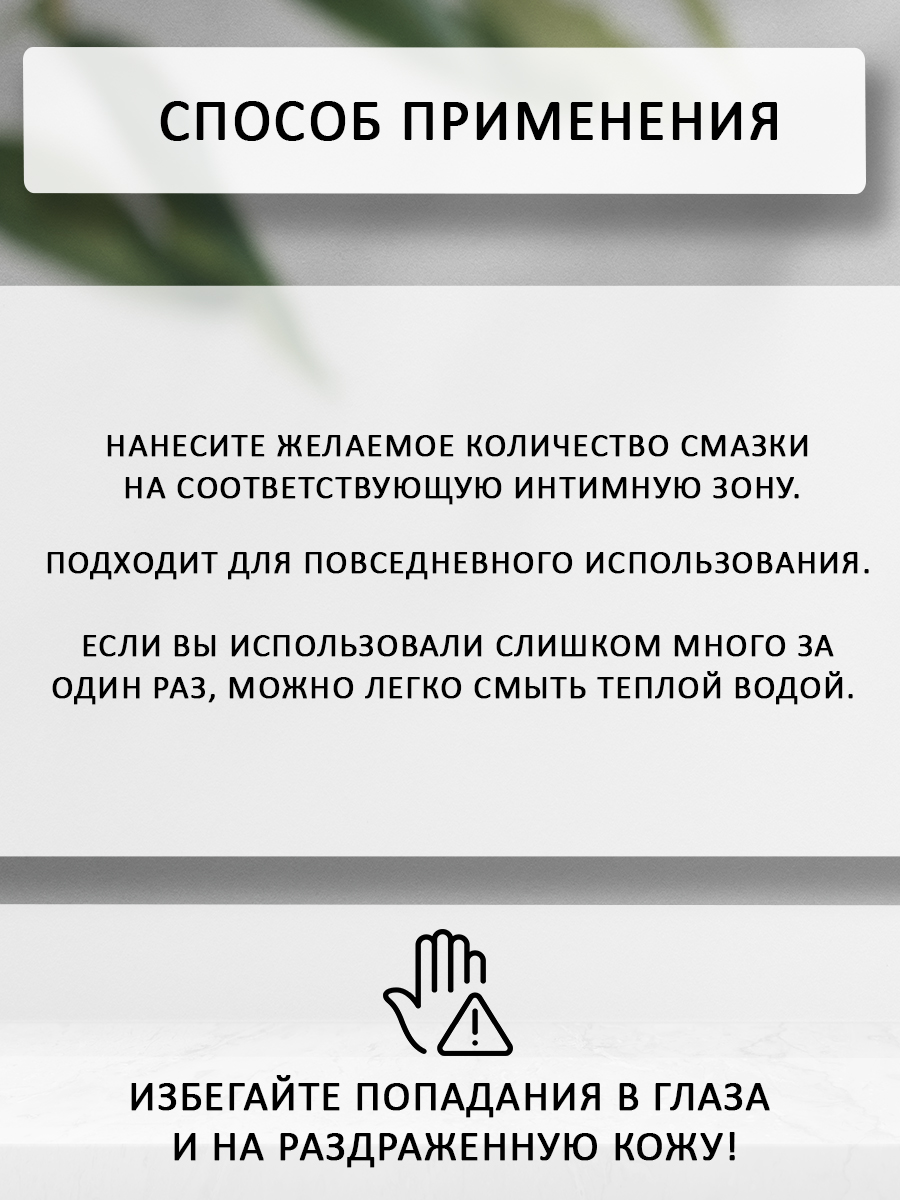 Продукт обладает кремовой консистенцией и его легко можно взять одной рукой. После нанесения оставляет мягкое и гладкое ощущение на коже. При необходимости легко смывается водой с мылом.