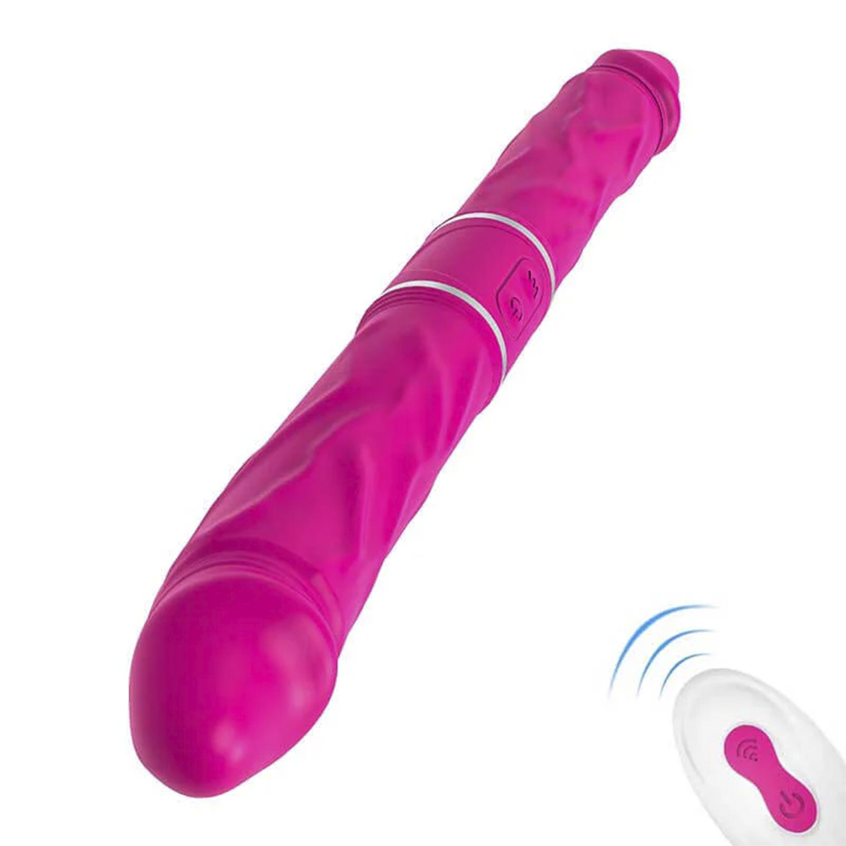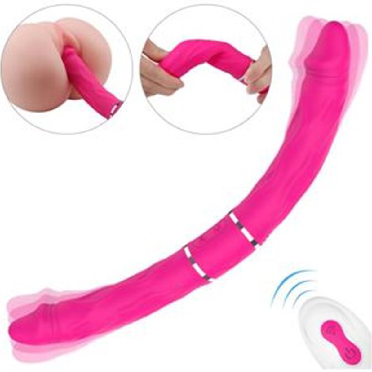 Девайс порадует 9 режимов вибрации, которыми можно управлять с помощью пульта дистанционного управления. Как заявляет производитель, изделие полностью водоустойчиво. Время работы до 2 часов. Общая длина – 35 см, рабочая – 14,7 см с каждой стороны. Ширина головки – 3,3 см, высота – 4,2 см.