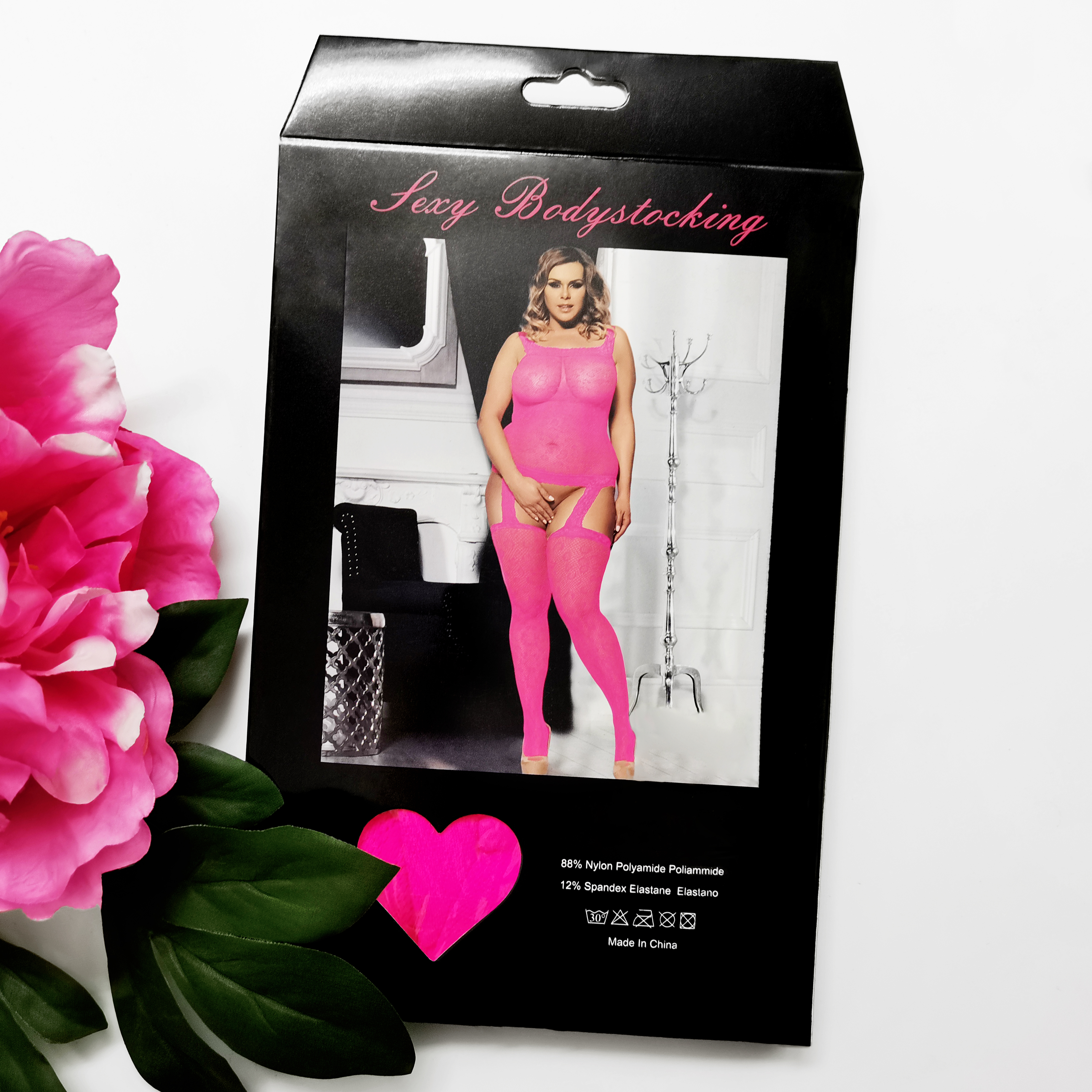 Plus Size Pink Leopard patterned garter fishnet bodystocking – Ваше идеальное дополнение к жаркой ночи!