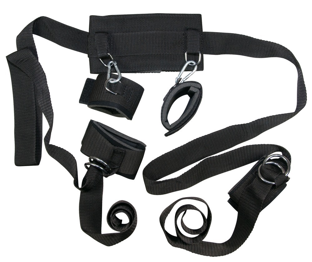 Фиксаторы от знаменитого европейского бренда были созданы для того, чтобы любые горячие фантазии могли воплотиться в реальность! Они выполнены из полипропилена и металла, а манжеты дополнены мягкой подкладкой. Крепления соединены между собой карабинами, двумя длинными ремешками (155 см) и шейной манжетой (ширина 10 см). Размер регулируется с помощью липучек. Изделие придется по душе любителям легкого БДСМ, а также тем, кто давно хотел внести разнообразие в свою сексуальную жизнь.