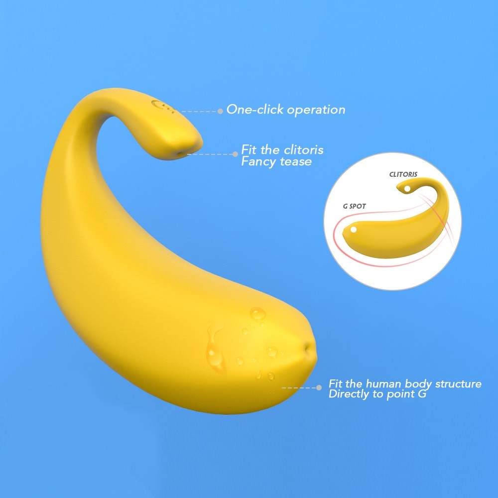 Изделие имеет форму маленького банана и относительно гибкий хвостик, который ложится на клитор. Модель порадует своих обладателей 9 режимами вибрации и возможностью дистанционного управления с помощью пульта. Водонепроницаемость – IPX6. Время работы до 2 часов при полной зарядке (90 минут). Общая длина – 12 см, рабочая – 9,3 см. Ширина – 3,2 см.