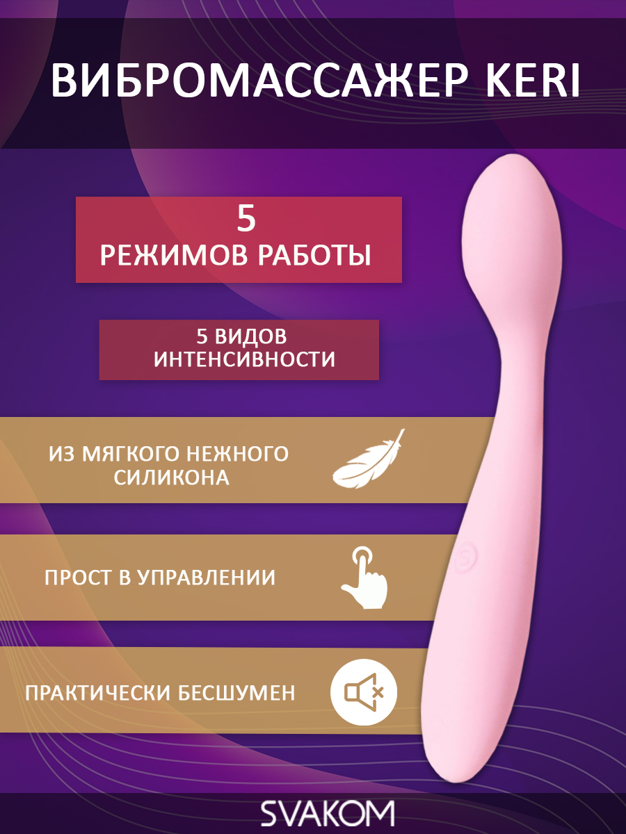 5 скоростей, 5 режимов интенсивной вибрации. 25 возможных вариаций на выбор. Keri практически полностью бесшумен. Не требует много времени на подзарядку. Одна удобная интуитивная кнопка управления.