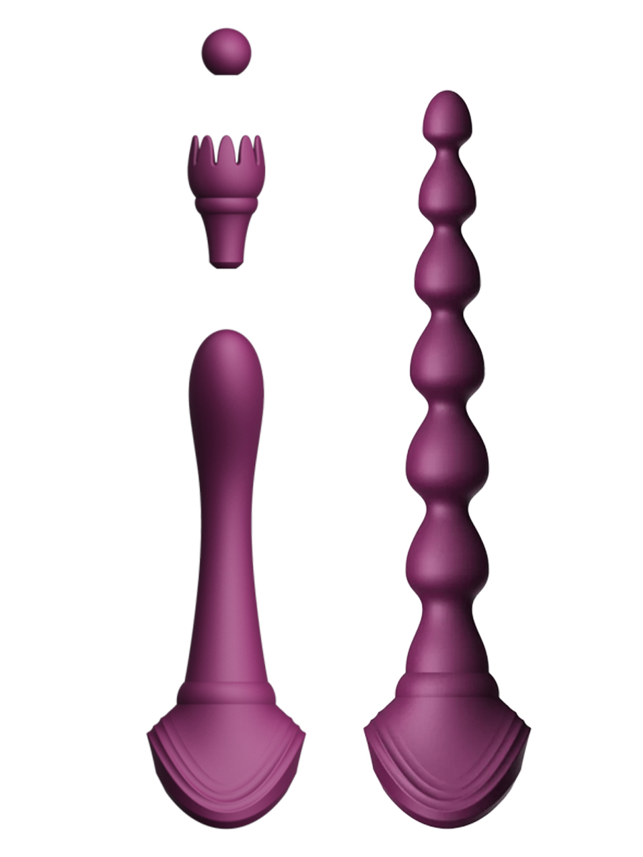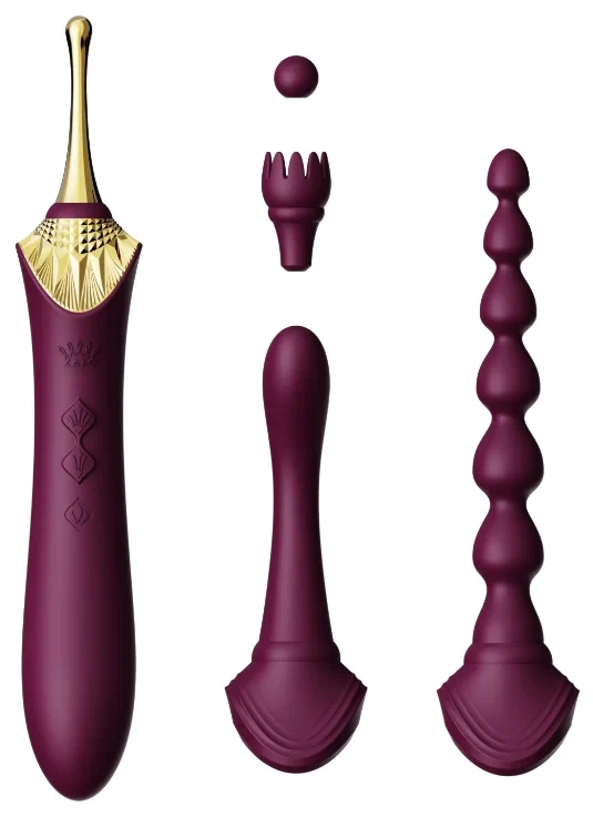 Изысканный вибромассажер из коллекции Legend Series способен покорить сердце каждой девушки. Он выполнен из премиум-силикона и имеет сразу 2 мотора и 4 насадки в комплекте. Первая – маленький шарик для точечной стимуляции клитора и внешних эрогенных зон. Вторая больше похожа на изящную щеточку, которая сделает ласки еще более необычными и приятными. Третья – эргономичный фаллос, что будет воздействовать на зону точки G для самого незабываемого оргазма! И четвертая – анальная елочка.