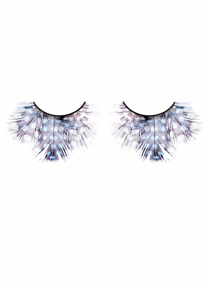 Очень нарядные ресницы из мягких высококачественных перьев ручной обработки голубого и лилового цветов, пушистые, с рисунком в крапинку. Идеально для выхода, привлечения внимания и флирта. В комплект входит клей для легкого и комфортного прикрепления ресниц. Цвет: голубой/лиловый. Производитель: BACI-lingerie, США.