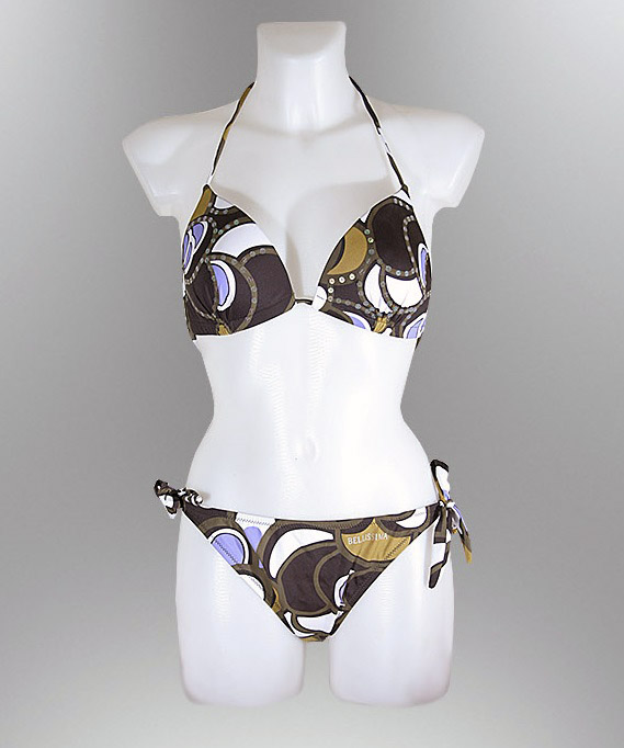 Купальник раздельный, состоящий из уплотненной чашечки и трусиков на боковых завязках. Размер М.