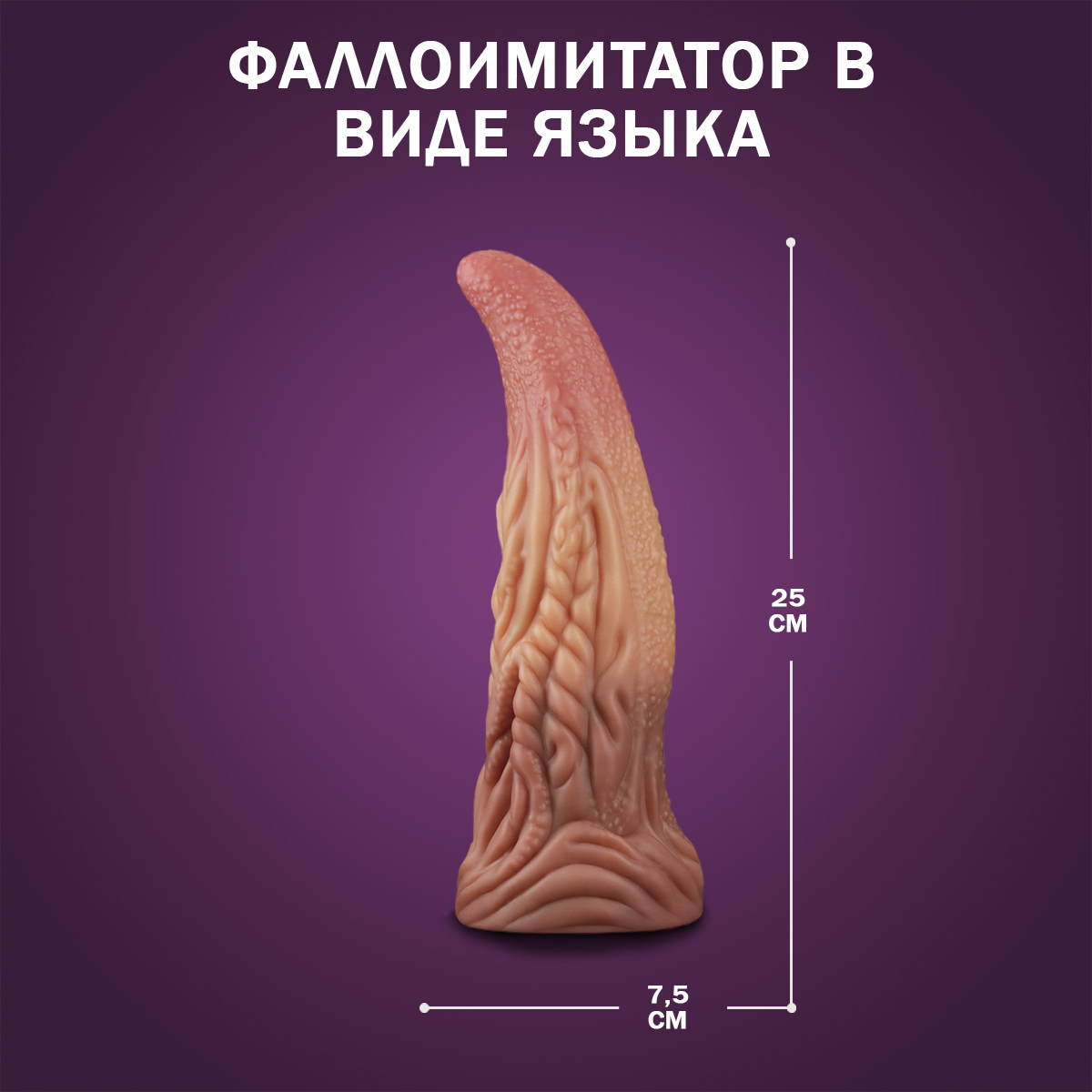 Специальная присоска позволит закрепить язык на любой плоской поверхности или же использовать его в качестве насадки для страпона. Полностью водоустойчив и прост в уходе. Длина – 25 см. Диаметр – 7,5 см (в самой широкой части), присоски – 9 см. Вес – 864 г. Рекомендуем использовать с лубрикантом на водной основе.