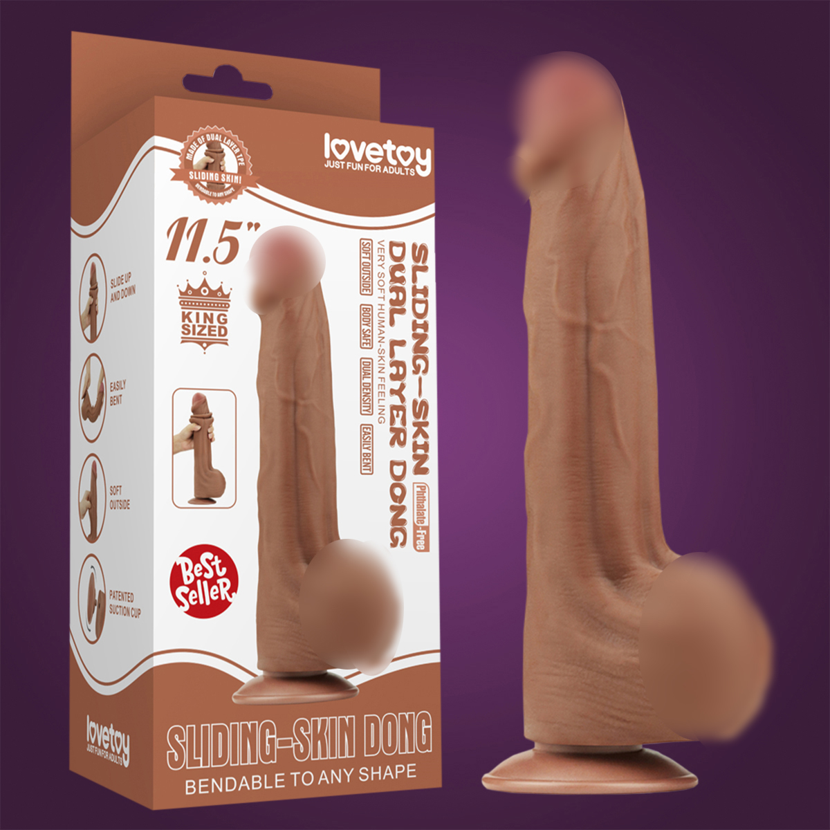 Откройте для себя все грани удовольствия вместе с 11.5'' King Sized Sliding Skin Dual Layer Dong Brown от lovetoy!