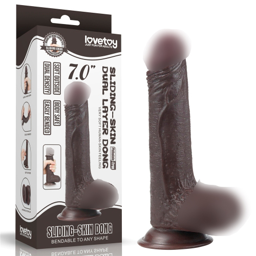 Откройте для себя все грани удовольствия вместе с 7'' Sliding Skin Dual Layer Dong - Black от lovetoy!