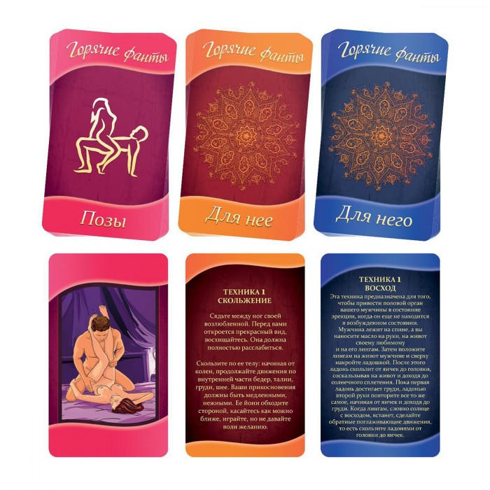 Жаркие фанты подарят партнерам отличную возможность опробовать новое. В игру входят 10 карт с ласками для нее «йони», 10 карт с ласками для него «лингам», 20 карт «Позы любви» и, конечно, правила. Каждая карточка имеет подробное описание техники ласк. Это превосходный шанс доставить друг другу невероятное удовольствие, опробовать новые техники и открыть эрогенные зоны друг друга!