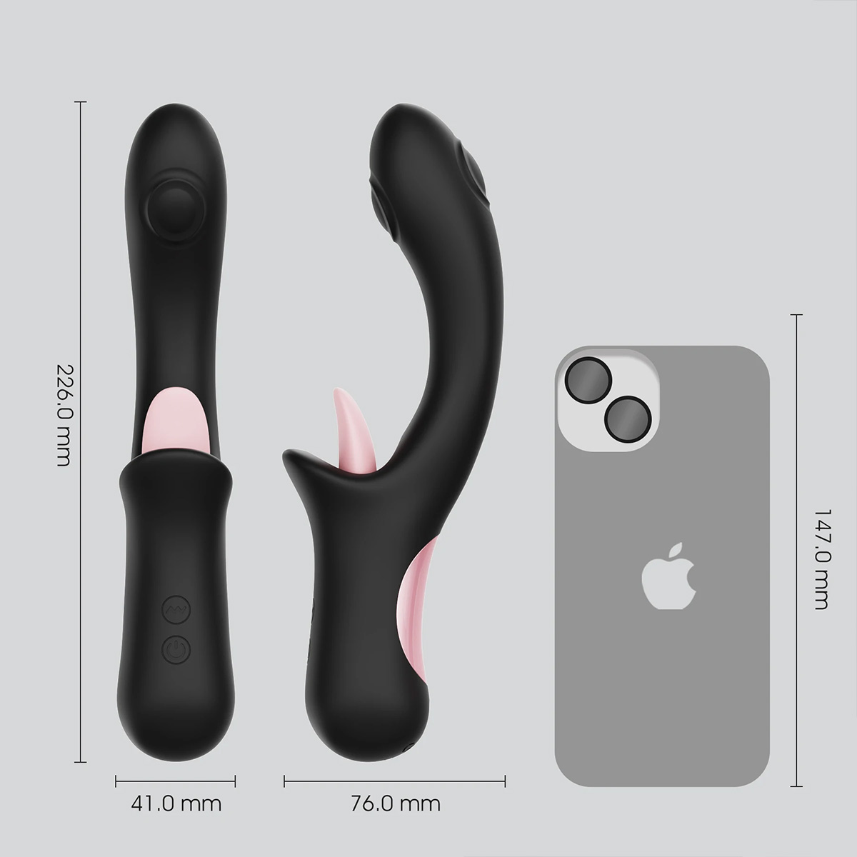 Вибратор-кролик выполнен из силикона, ABS-пластика и приятен на ощупь. Он идеально подойдет для яркой соло-программы и прелюдии с партнером. Вагинальный отросток модели достаточно гибкий, что позволит подстроить ее под анатомию, а также дополнен функцией «постукивания». Всего доступно 10 режимов стимуляции, которыми можно управлять кнопками на корпусе.