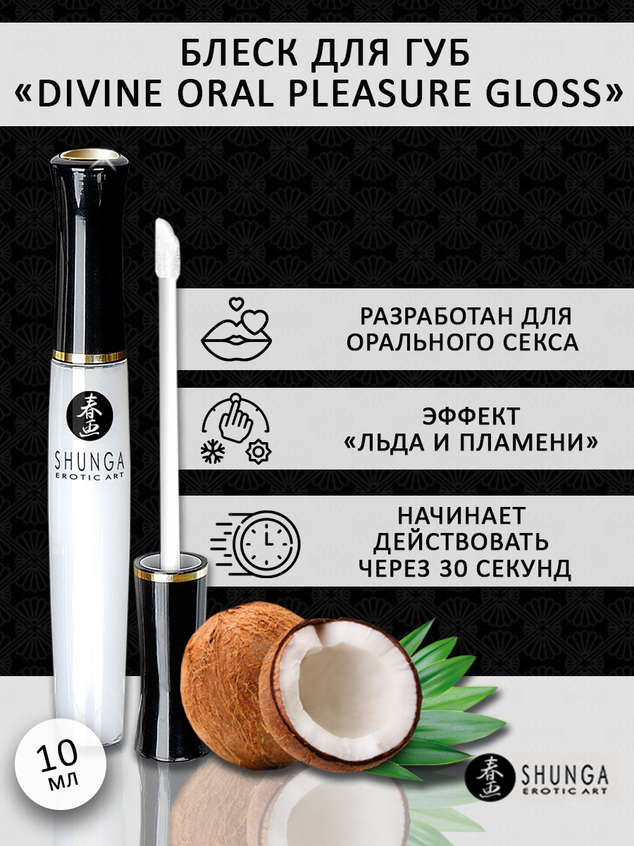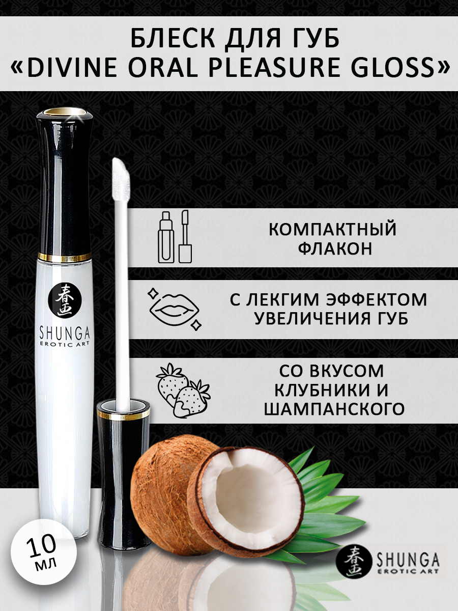 Блеск для губ «Divine Oral Pleasure Gloss. Coconut Water» от Shunga сделает ваши поцелуи и ласки просто незабываемыми!