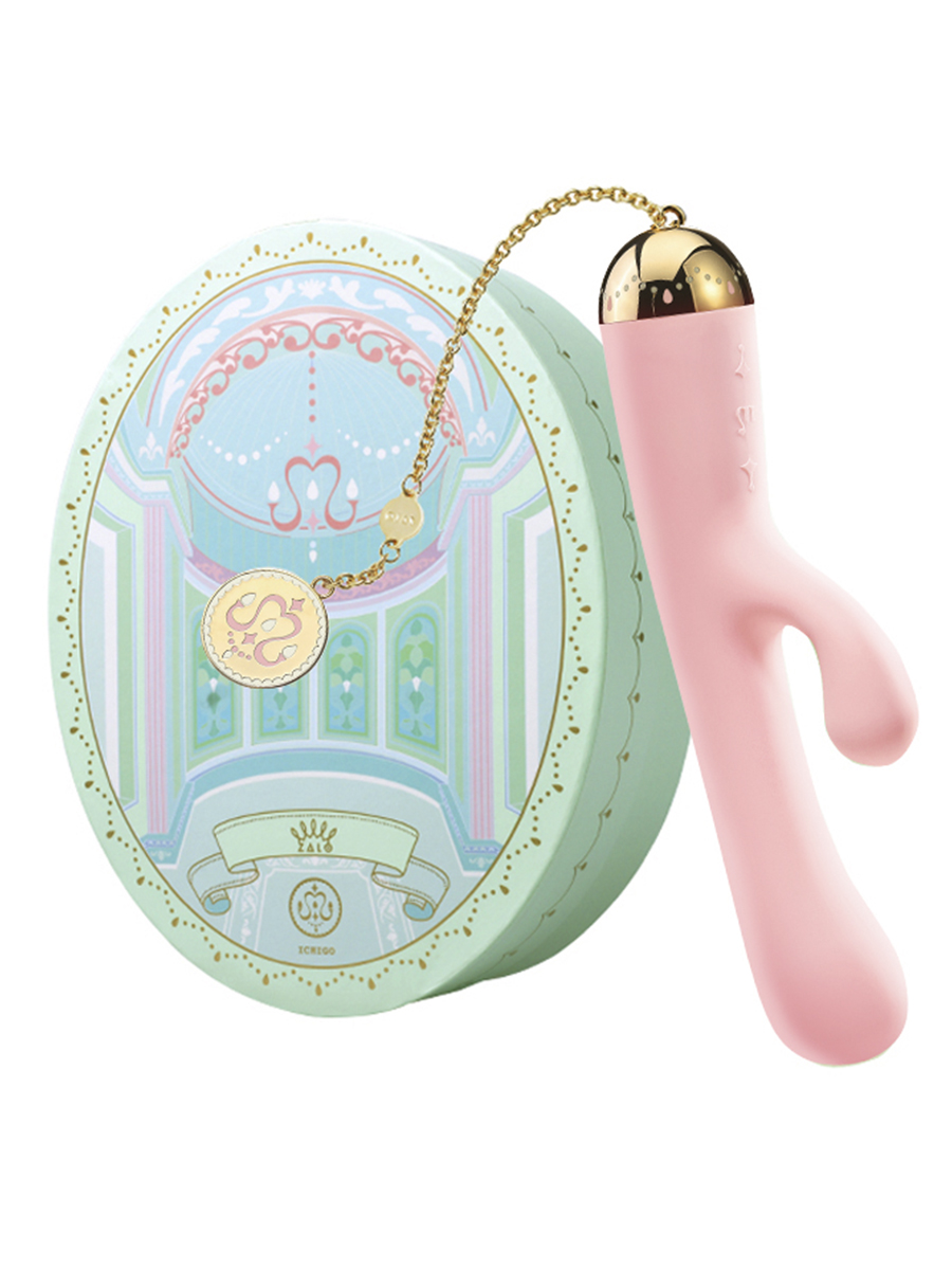 Утонченный и изысканный вибратор-кролик от компании Zalo способен покорить сердце каждой девушки. Он выполнен из премиум-силикона, а сверху имеет шелковистое покрытие Softek. Девайс завершает притягательная съемная цепочка с золотом на поверхности металла. Ichigo обладает эргономичной формой и немного утолщенной головкой для наилучшей стимуляции зоны точки G, а вибрирующий клиторальный отросток не оставит ни одну представительницу прекрасного пола без оргазма!
