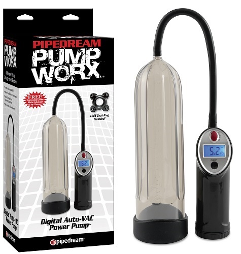 Помпа Digital Auto-VAC Power Pump обладает автоматической системой насоса. Она порадует своих обладателей мягким материалом на входе, насосом с цифровым дисплеем, на котором отображается давление внутри колбы, а также возможностью ее использования без рук. Длина 25 см, диаметр 6,5 см. Работает от 4 батареек типа АА. Также в комплект входит эрекционное кольцо.
