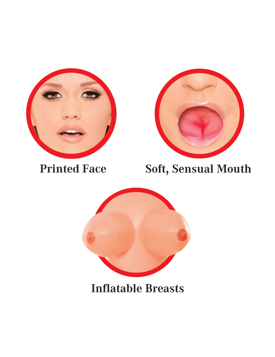 Надувная полноразмерная кукла от знаменитого американского бренда была создана для того, чтобы Вы смогли воплотить в жизнь свои самые сокровенные фантазии! Пышногрудая симпатичная блондинка готова порадовать своих обладателей сразу тремя дырочками: вагинальной, анальной и сексуально приоткрытым ротиком.