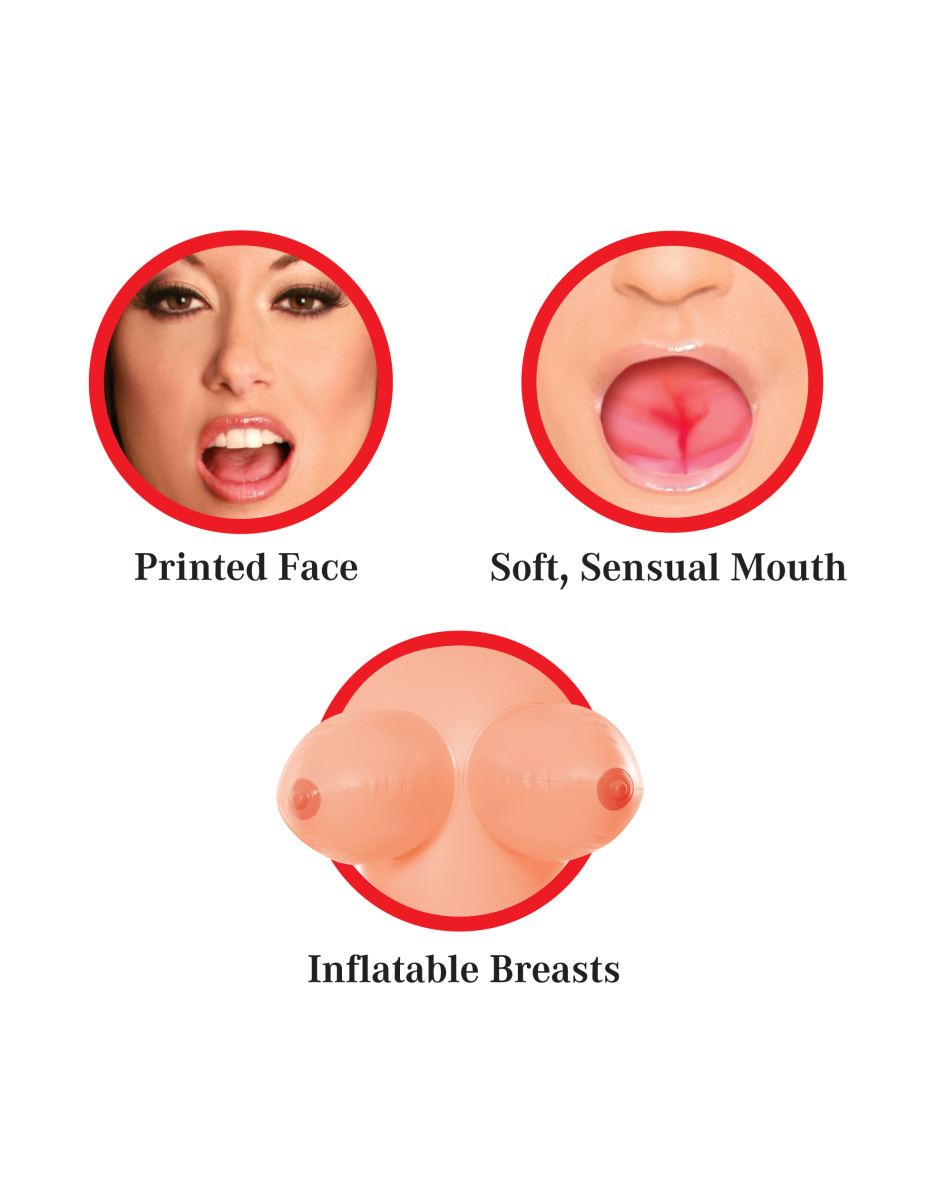 Надувная полноразмерная кукла от знаменитого американского бренда была создана для того, чтобы Вы смогли воплотить в жизнь свои самые сокровенные фантазии! Пышногрудая горячая брюнетка готова порадовать своих обладателей сразу тремя дырочками: вагинальной, анальной и сексуально приоткрытым ротиком.