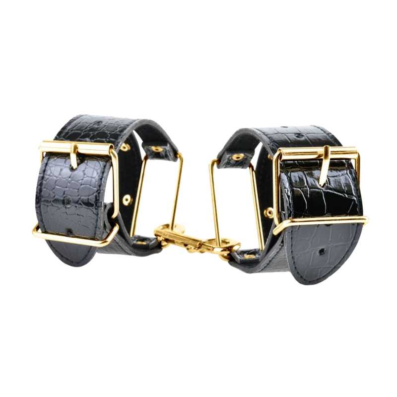 Наручники из коллекции Fetish Fantasy Gold были созданы для того, чтобы любые горячие фантазии могли воплотиться в реальность! Они выполнены из искусственной крокодиловой кожи, а манжеты соединяет золотой карабин. Также подходят и для фиксации лодыжек.