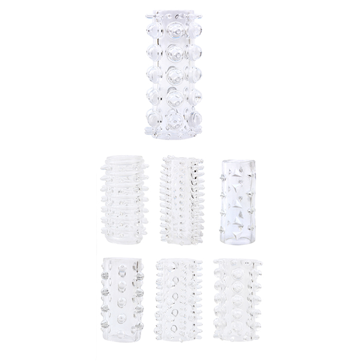 С набором стимулирующих открытых насадок любой мужчина сможет подарить своей партнерше незабываемую ночь! Изделия выполнены из безопасного для тела TPE-материала и имеют различную рельефную поверхность. Каждое из них позволит обеспечить дополнительный массажа стенок влагалища и новые ощущения от секса. Также модели плотно прилегают к половому органу, позволяя немного продлить эрекцию и получить более яркие эмоции за счет того, что самая чувственная мужская зона остается открытой.