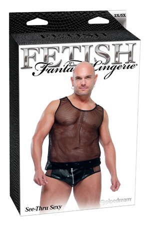 Костюм стриптизера от знаменитого американского бренда был создан для того, чтобы любые горячие фантазии могли воплотиться в реальность! Он состоит из прозрачных трусов в сеточку со вставкой из винила и сетчатой майки, которая подчеркнет всю сексуальность мужского тела. Размер: 2XL - 3XL. Входит в серию Fetish Fantasy Lingerie.
