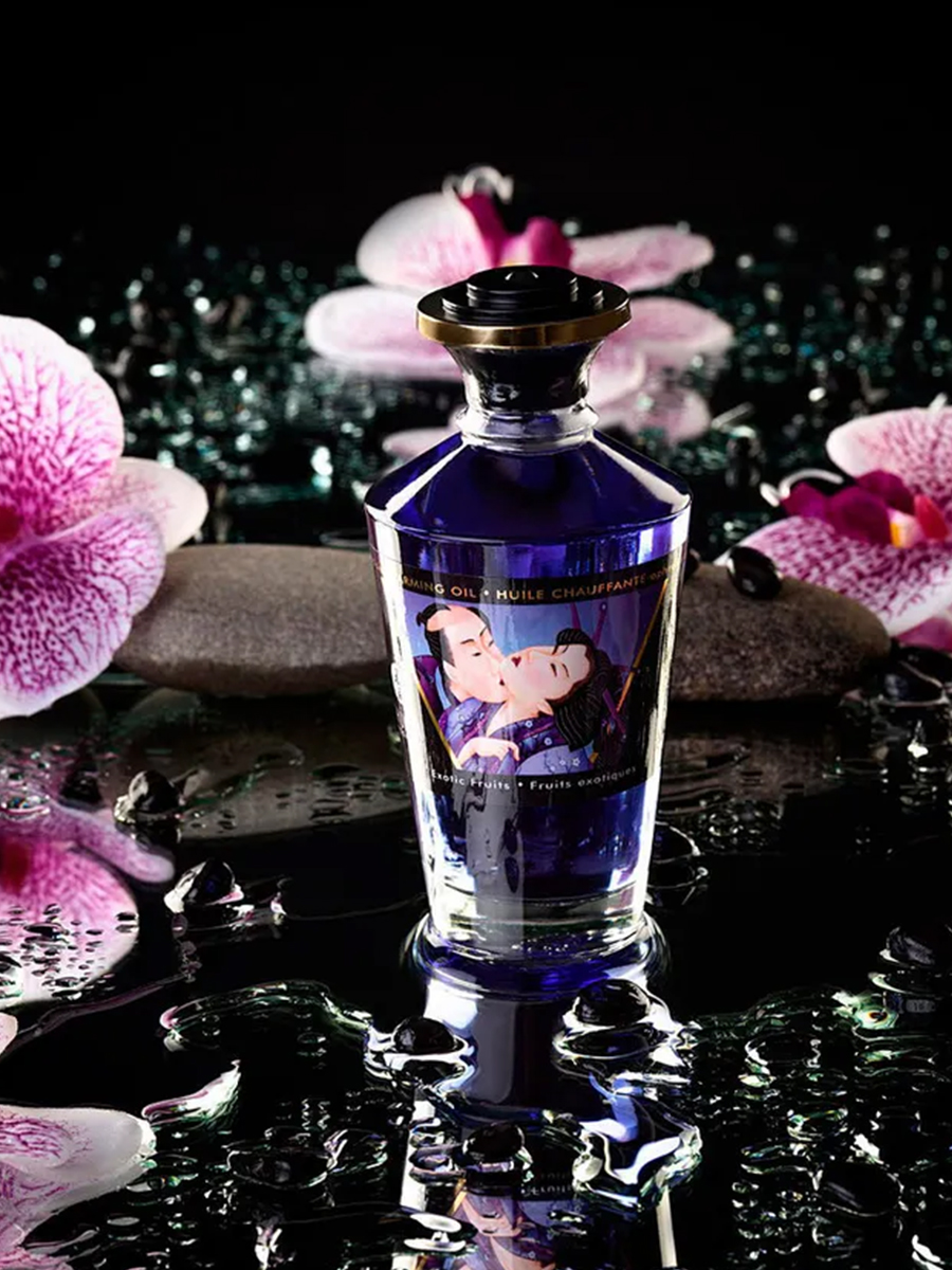 Shunga APHRODISIAC WARMING OIL Exotic Fruits - разогревающее, съедобное масло для тела с натуральным фруктовым вкусом.