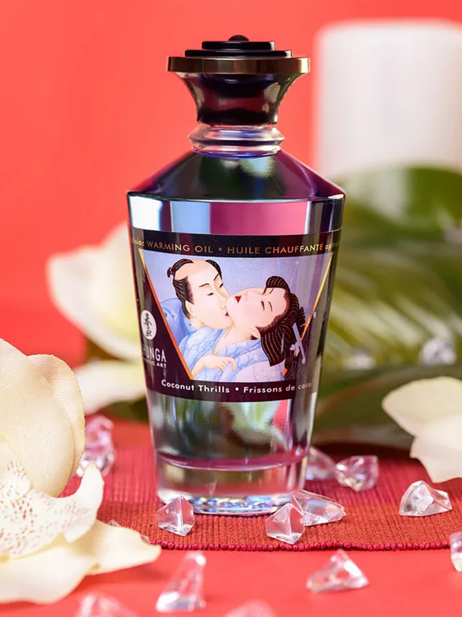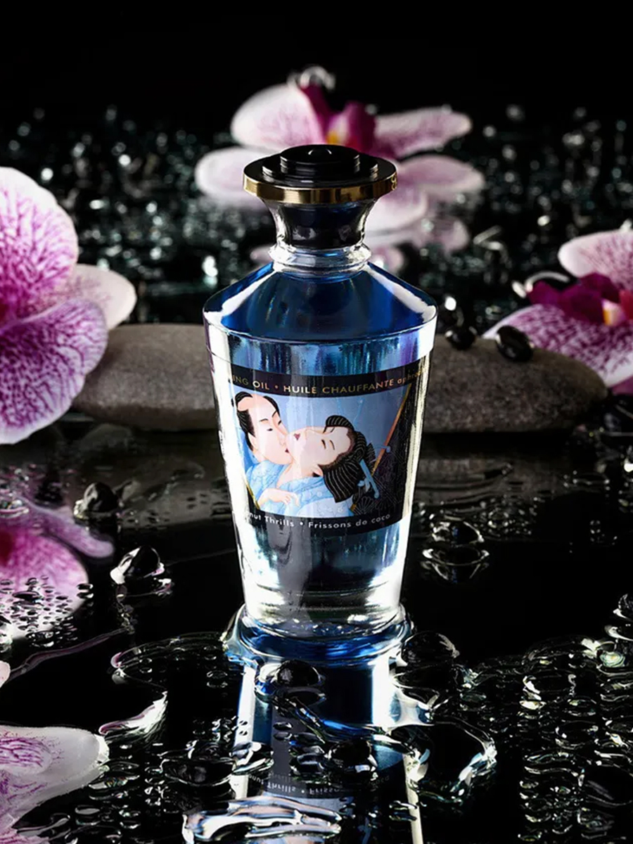 Shunga APHRODISIAC WARMING OIL Coconut Thrills - разогревающее, съедобное масло для тела с натуральным вкусом кокоса.