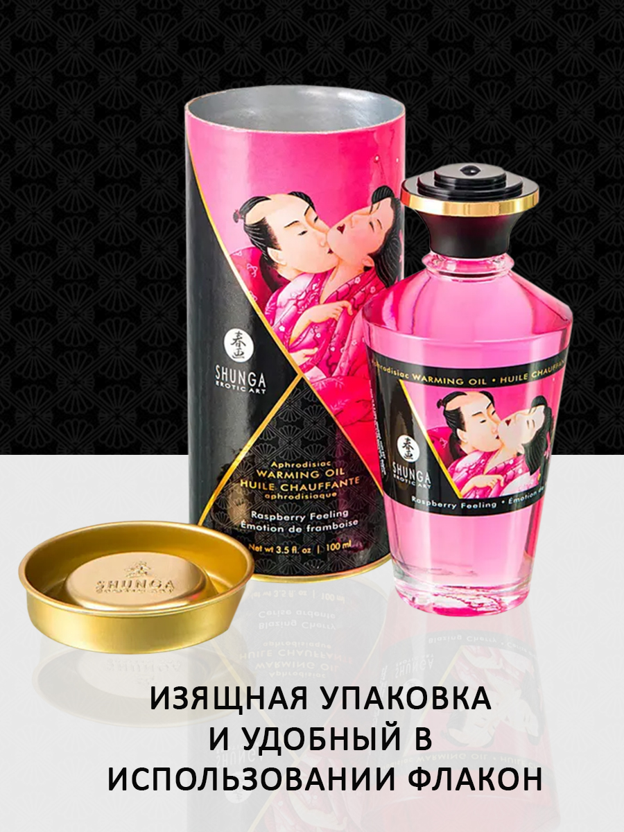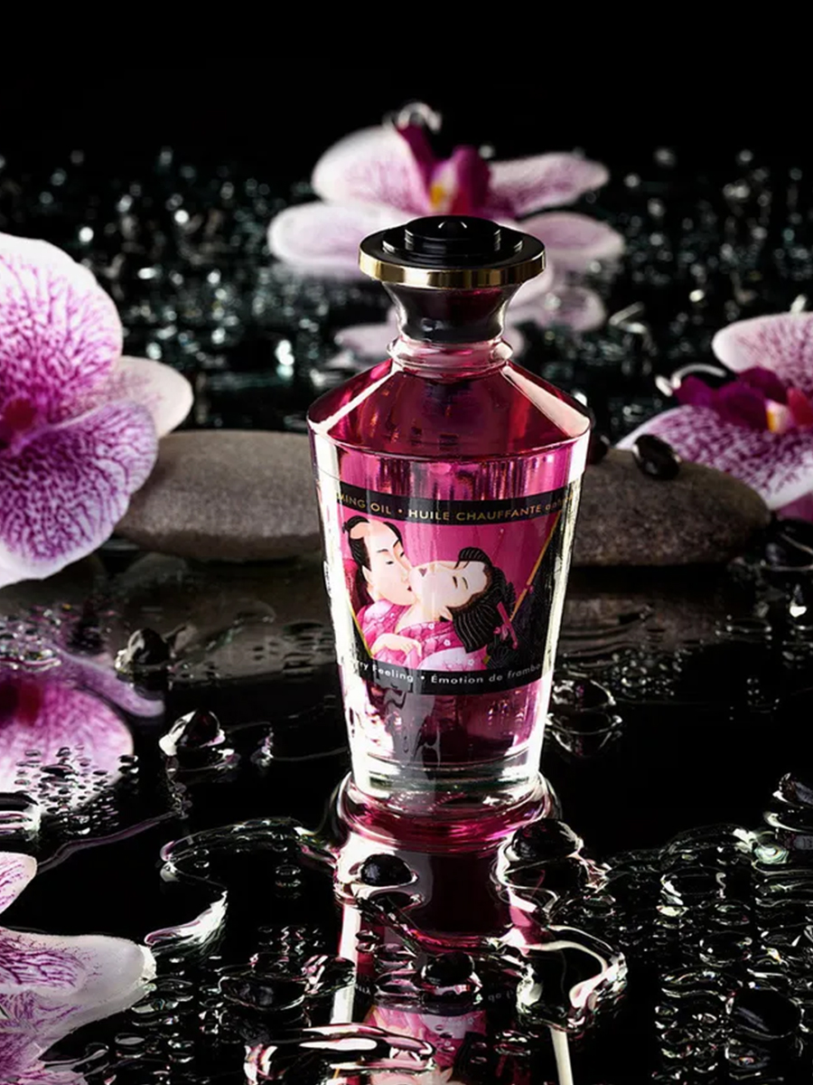 Shunga APHRODISIAC WARMING OIL Raspberry Feeling - разогревающее, съедобное масло для тела с натуральным вкусом малины.