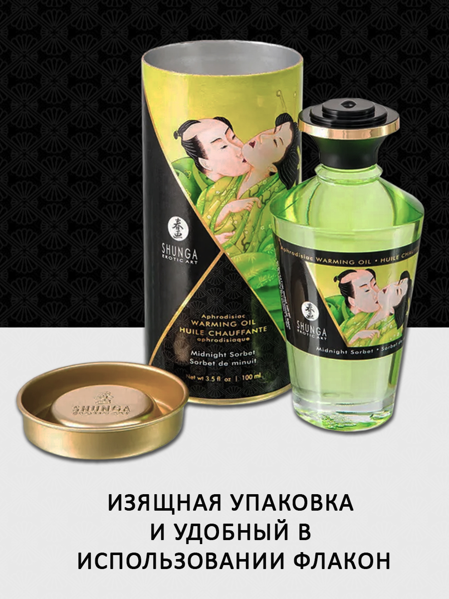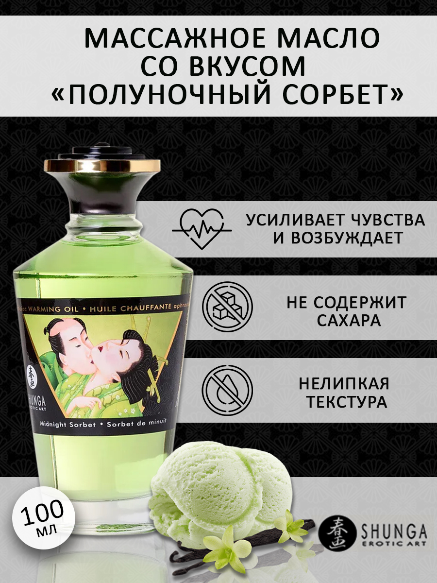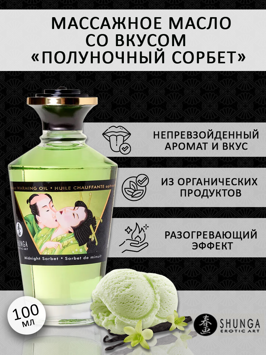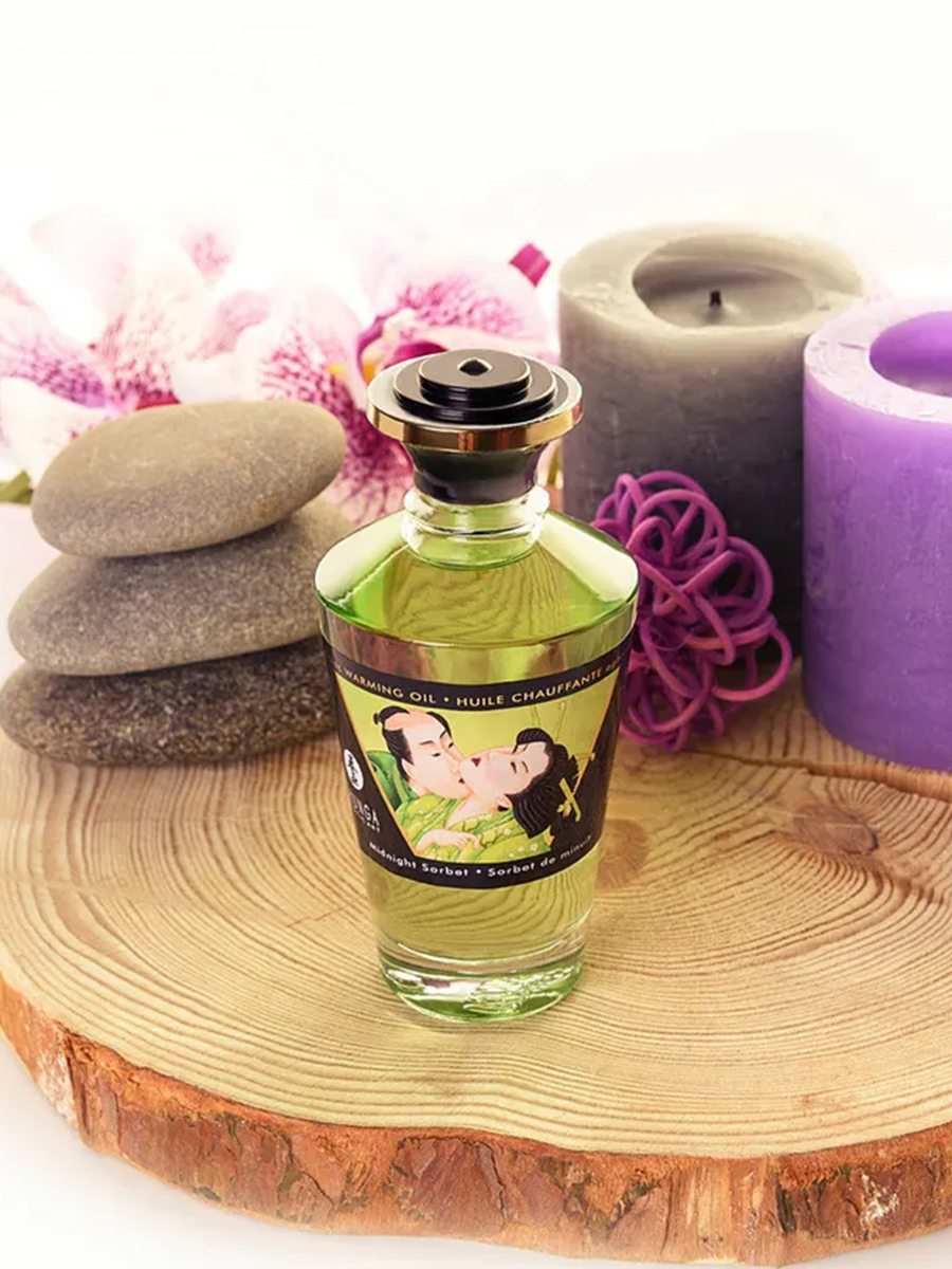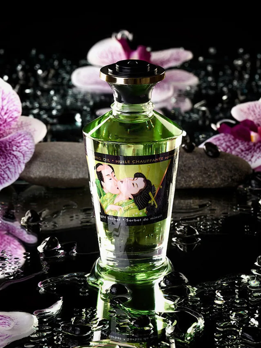 Shunga APHRODISIAC WARMING OIL Midnight Sorbet - разогревающее, съедобное масло для тела с натуральным вкусом мороженого щербет.