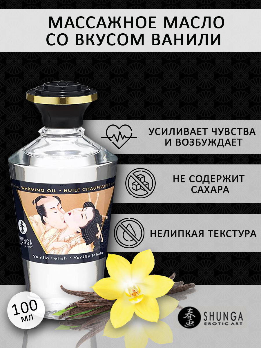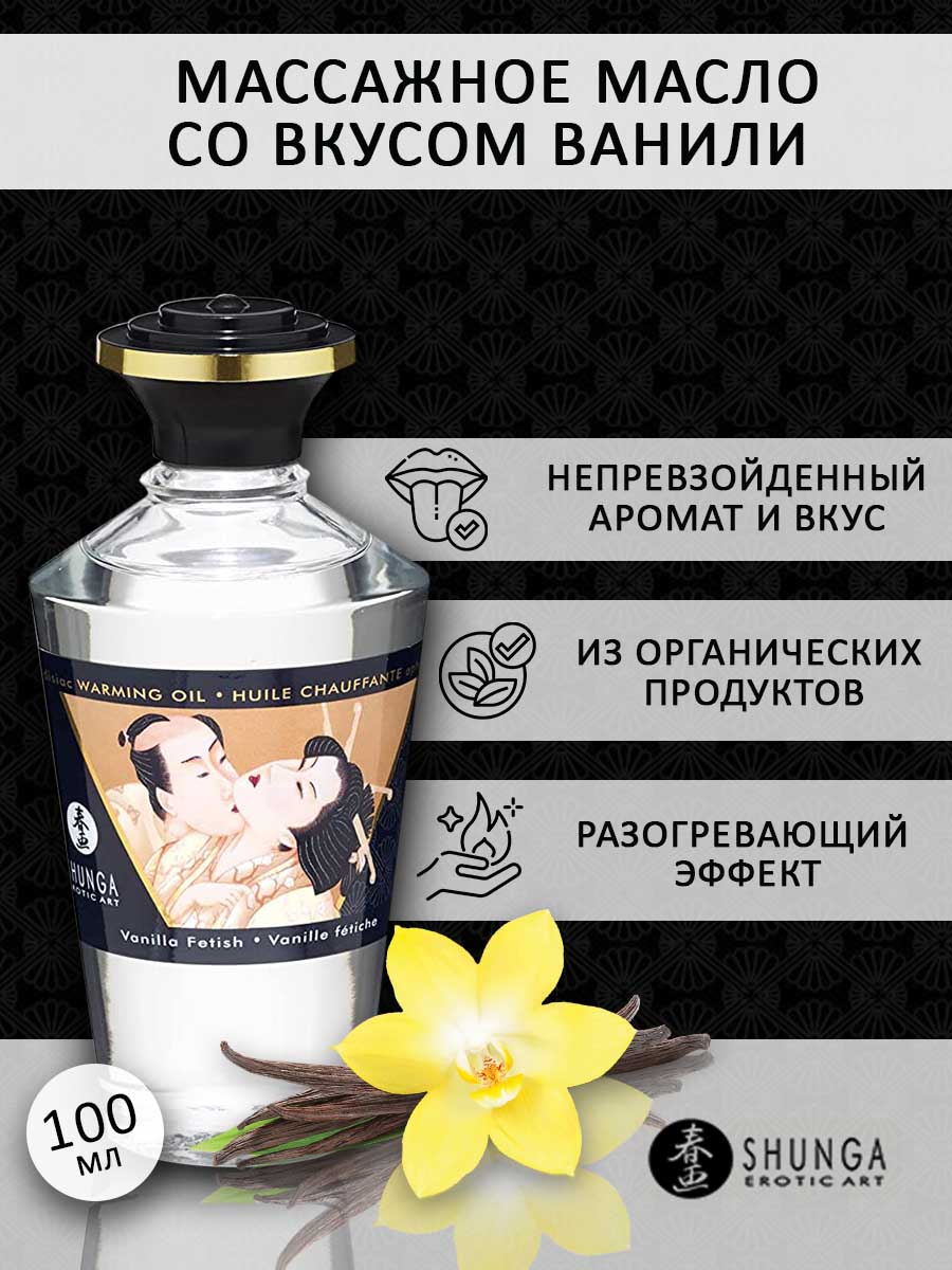 Shunga APHRODISIAC WARMING OIL Vanilla Fetish - разогревающее, съедобное масло для тела с натуральным вкусом ванили.