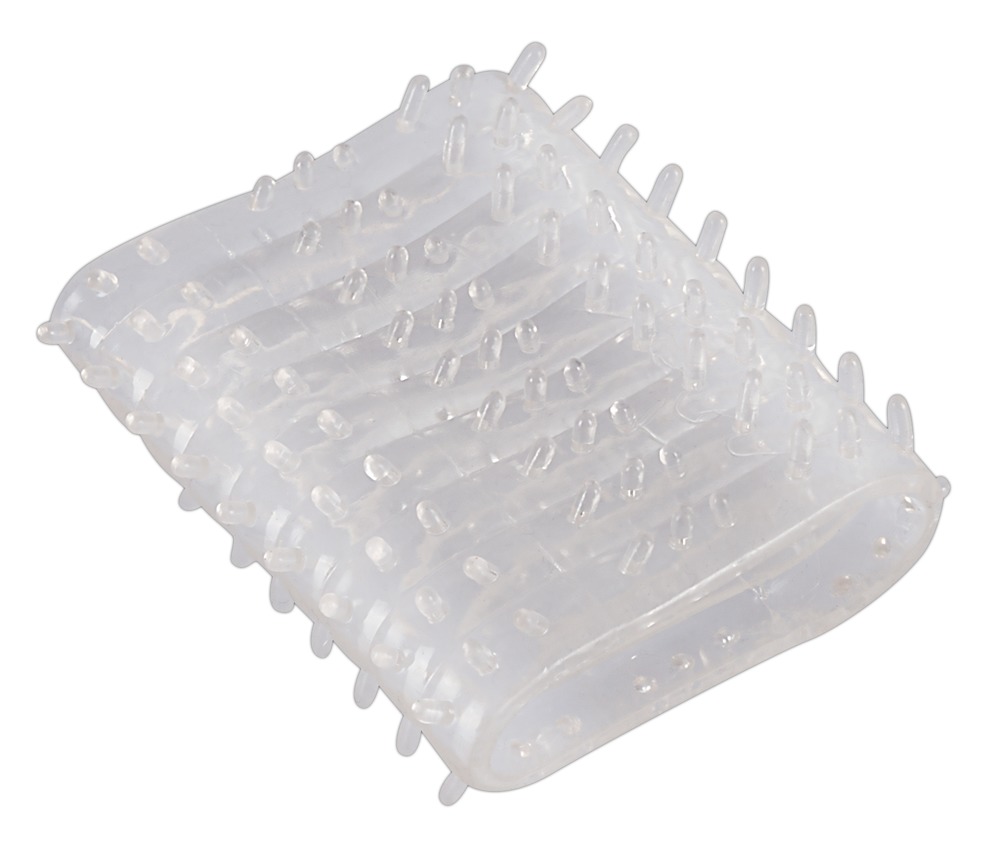 Для него: эластичная открытая насадка на член с усиками для дополнительной стимуляции партнерши (7 см, диаметр внутри – 3,3 см), эластичное эрекционное кольцо с подхватом мошонки, в которое можно вставить вибропулю (диаметр первого кольца внутри – 2,4 см, второго – 4 см).