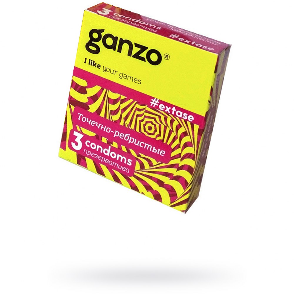 Ganzo Extase – это латексные презервативы анатомической формы с силиконовой смазкой, которые сочетают в себе надежность, доступную стоимость и дерзкий яркий дизайн. Модель отличается своей ребристой и одновременно точечной поверхностью для мягкой, но интенсивной стимуляции входа и стенок влагалища, что поможет увеличить шанс на получение оргазма у женской стороны.