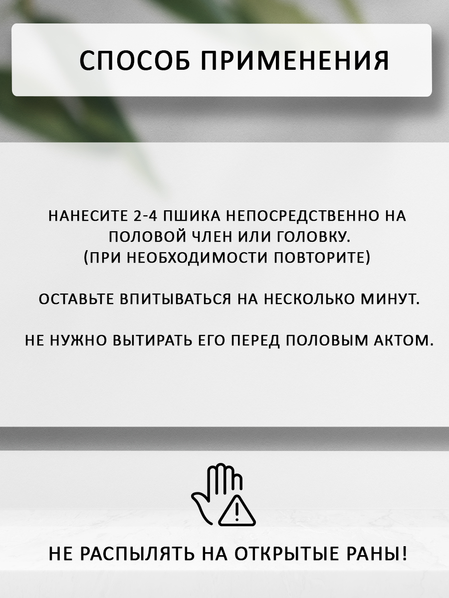 Спрей-пролонгатор для мужчин был создан специально для того, чтобы ночи любви длились как можно дольше! В его состав входят экстракт дубовой коры и пантенол, которые успокоят кожу и снизят повышенную чувствительность. Для полного раскрытия эффекта средства рекомендуется нанести всего одну дозу на эрегированный мужской половой орган и подождать несколько минут. При необходимости, процедуру можно повторить. Долгая и незабываемая ночь обеспечена!