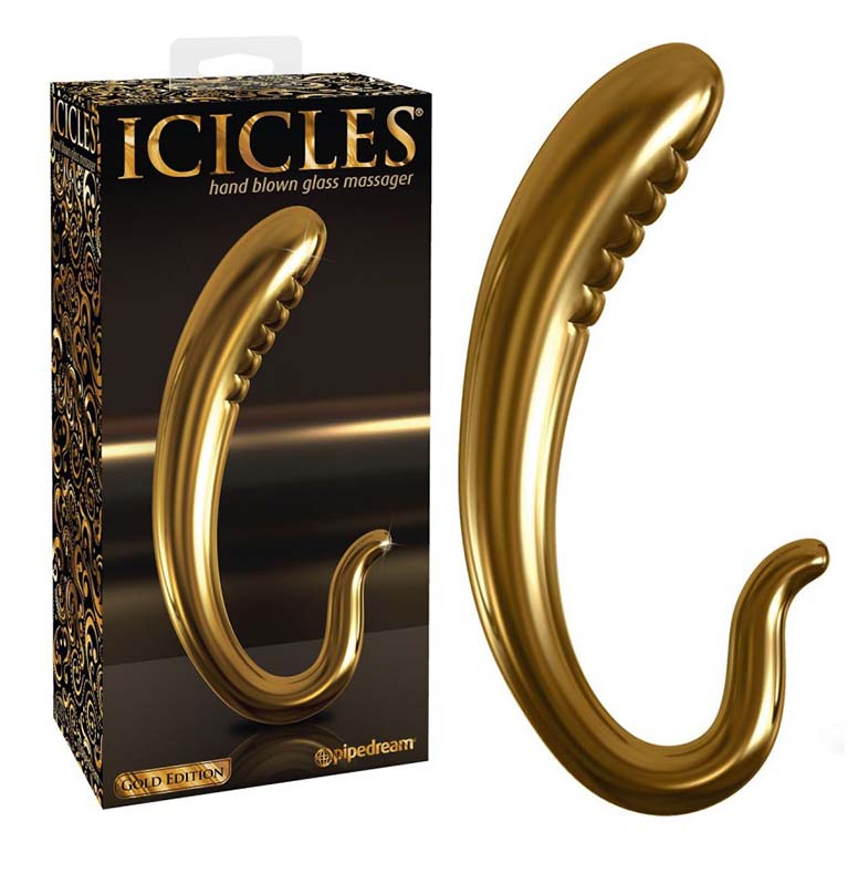 Фаллоимитатор от знаменитого американского бренда был создан для того, чтобы дарить удовольствие. Входит в серию Gold Edition. Он выполнен из стекла и покрыт эмалью под золото. Его изогнутая рельефная головка прекрасно простимулирует зону точки G у женщин и предстательную железу у представителей сильного пола. Ручка выполнена в форме крючка и позволит отлично контролировать весь процесс.