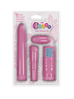 Эротический набор 4Play - Pink Pleasure Kit разнообразит отношения и добавит новые яркие ощущения. В набор входит классический вибратор, четырехскоростное вибро-яичко, и вибро-стимулятор с двумя насадками для эрогенных зон. Ультра глянцевый и гладкий корпус обеспечит надёжность и безопасность. Сочетается с любрикантами на любой основе. Можно использовать по отдельности или вместе, исходя от Ваших фантазий. Все устройства работают от батареек типа АА, общее кол-во 5 штук. Размер: Классический вибратор - длина - 17 см; диаметр - 2,5 см: вибро-яйцо; длина - 6 см; диаметр - 2,5 см: вибро-стимулятор: длина - 10 см. Материал: ABS. Цвет: Розовый. Производитель: NSNovelties, США.