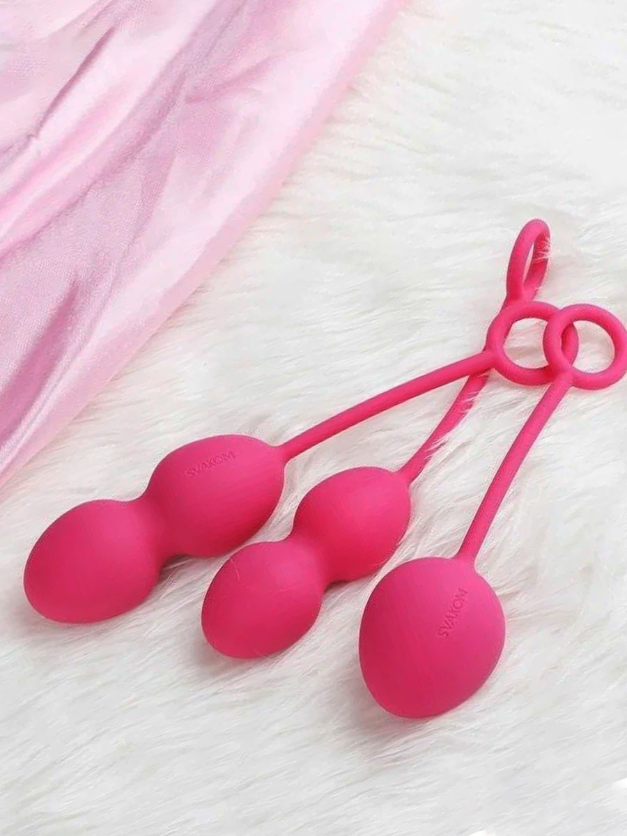 Nova Ball от Svakom – идеальный вариант вагинальных шариков, как для новичков, так и для продвинутых. Они выполнены из безопасного медицинского силикона и просты в использовании. В комплект входят сразу три варианта, которые отличаются по весу: 49, 74, 95 гр. А значит, что после достижения определенного результата, Вам не придется бежать в магазин за новым набором! Общая длина 17,6 см, включая силиконовый хвостик.
