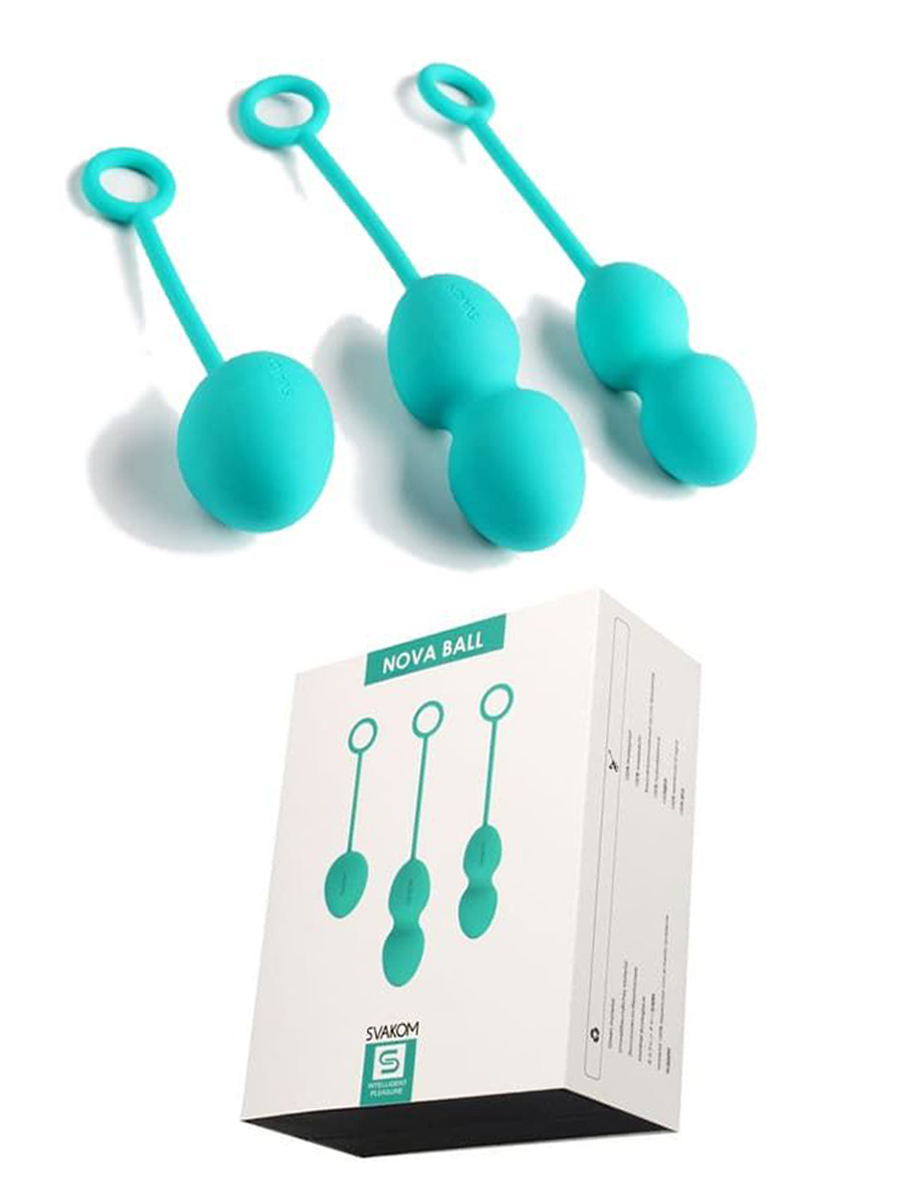 Nova Ball от Svakom – идеальный вариант вагинальных шариков, как для новичков, так и для продвинутых. Они выполнены из безопасного медицинского силикона и просты в использовании. В комплект входят сразу три варианта, которые отличаются по весу: 49, 74, 95 гр. А значит, что после достижения определенного результата, Вам не придется бежать в магазин за новым набором! Общая длина 17,6 см, включая силиконовый хвостик.