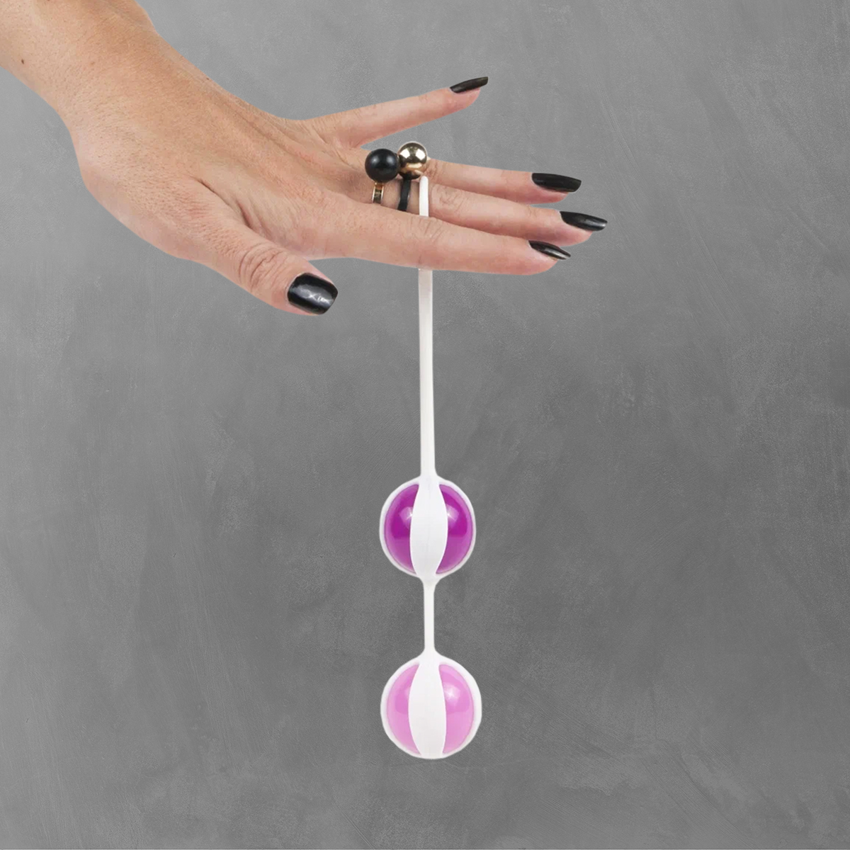 Сцепка «Geisha Balls 2» выполнена из медицинского силикона премиум-класса, а сами шарики - пластиковые. В наборе их 4 штуки разного веса: 24г, 34г, 44г, 56г. И это значит, что достигнув определенного результата, Вам не придется бежать в магазин за новым набором!