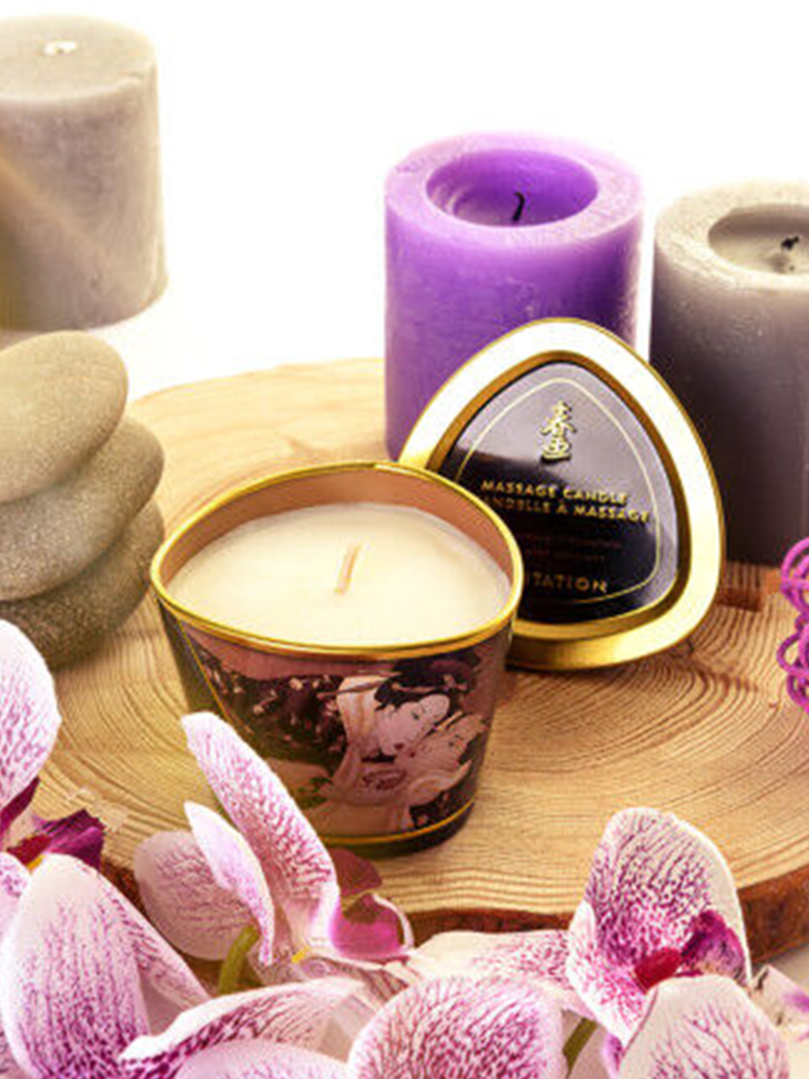Если обычные свечи сделаны из воска и парафина, то массажные - на основе твердых масел. Как известно, у последних ниже температура горения, а значит их можно спокойно выливать на кожу, не боясь неприятных ощущений или ожогов.