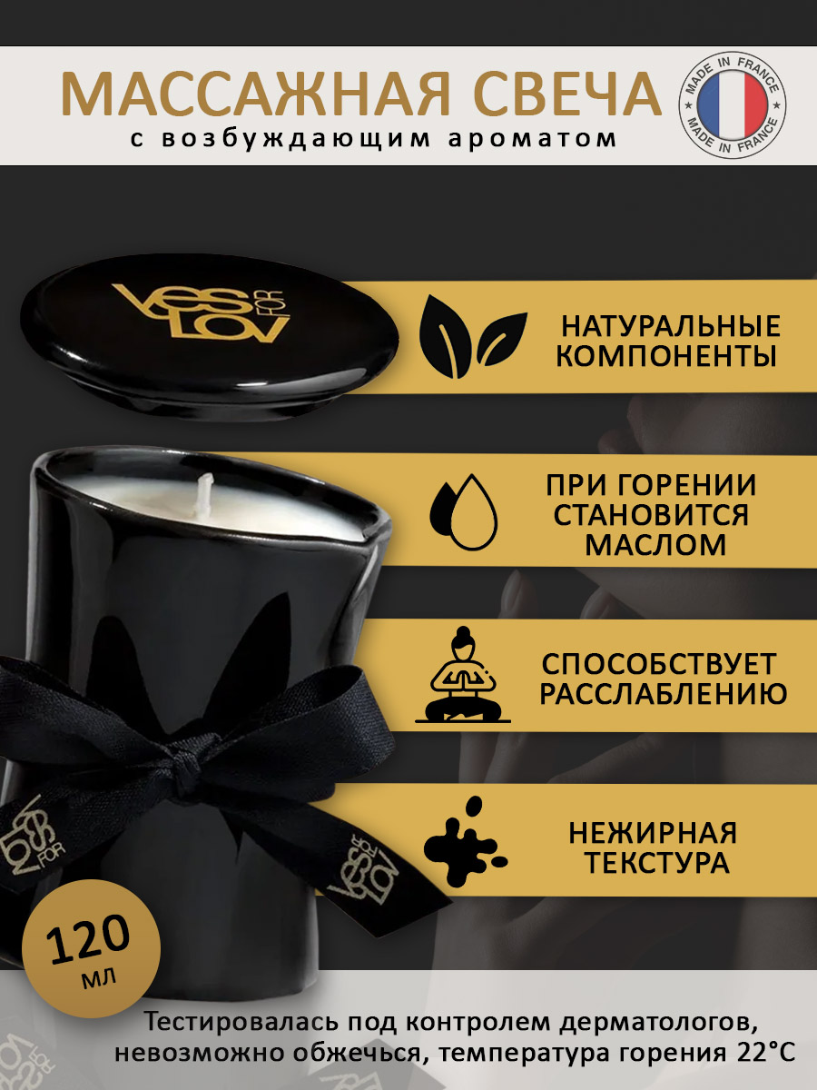 Massage Candle with titillating scent от YESforLOV - массажная свеча с возбуждающим ароматом, 100% из растительных ингридиентов. При горении становится маслом, способным свести с ума. Эта свеча идеальна для романтической прелюдии, чтобы навеять томное и расслабленное состояние.