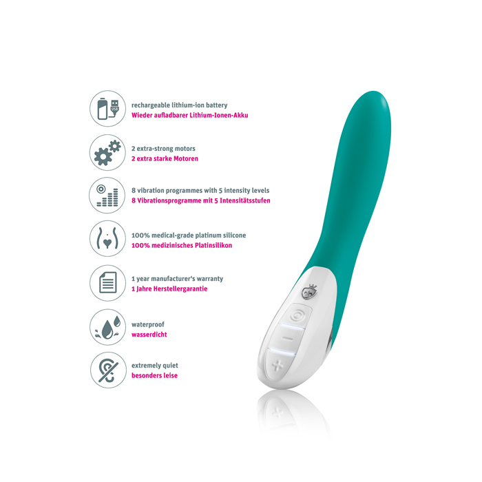 Вибратор от знаменитого немецкого бренда был создан специально для тех, кто хочет получить незабываемое наслаждение от соло-программы. В нем спрятаны сразу два мощных, но тихих моторчика, которые обеспечат незабываемую вагинальную стимуляцию. Девайс выполнен из нежного и очень приятного на ощупь медицинского силикона. Он порадует своих обладательниц 8 программами проникающей вибрации и 5 уровнями интенсивности.