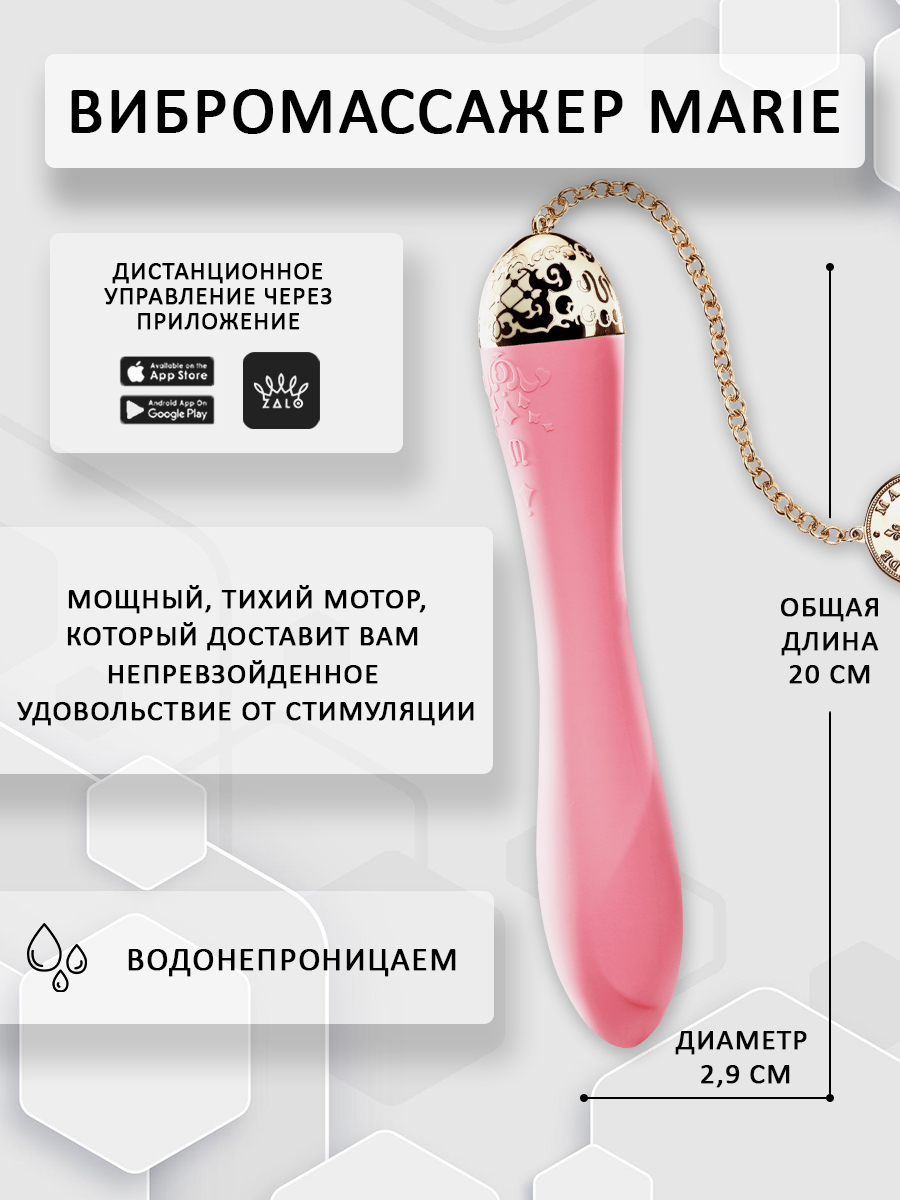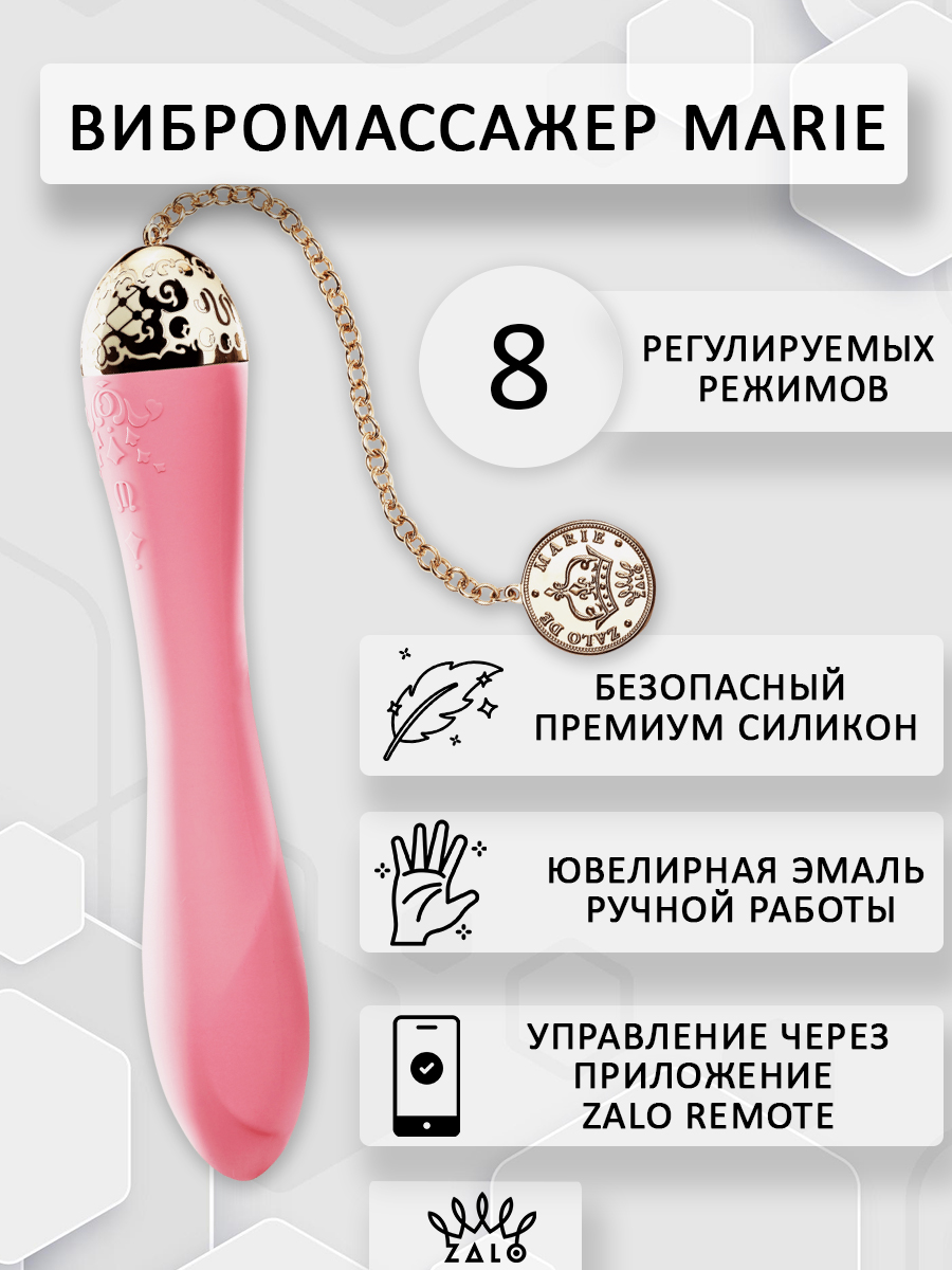Вибратор Zalo Marie серии Versailles - вибратор в богатом исполнении, идеальном для подарка. Изысканный рельеф, рассчитанный на усиление стимуляции, золотое покрытие на поверхности металла, съёмный позолоченный кулон на золотой цепочке. Мощный, тихий мотор для точки G, который доставит вам непревзойденное удовольствие от стимуляции.