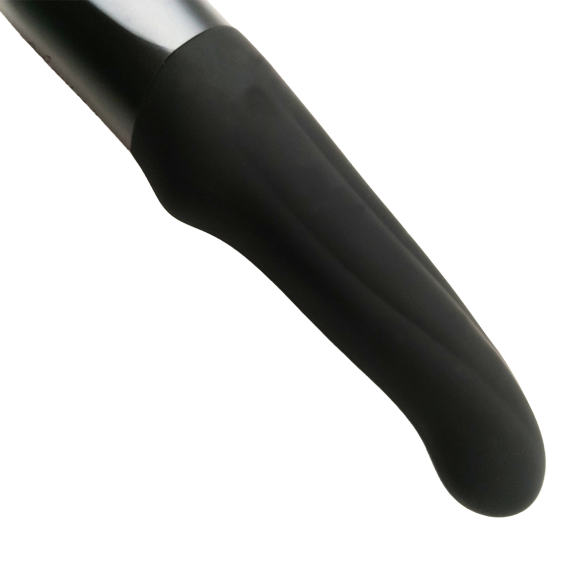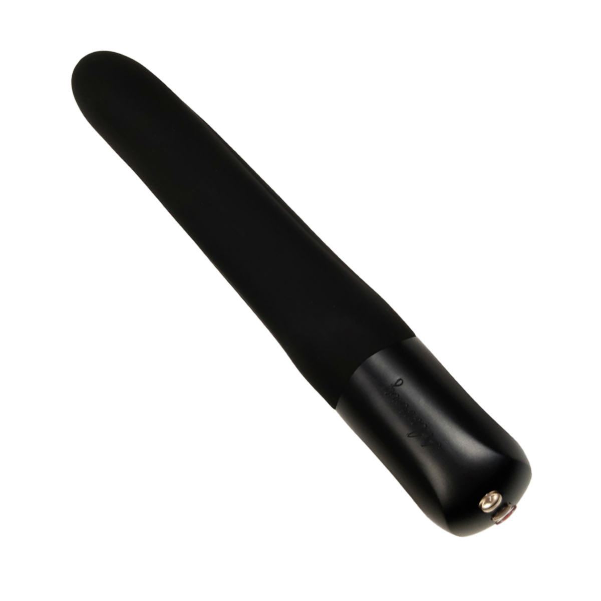 Вибромассажер полностью водонепроницаем и отлично подойдет для эротических игр в ванной или душе. Зарядка магнитная, идет в комплекте. Общая длина – 23,7 см, рабочая – около 15,5 см. Диаметр – 4,7 (в рукоятке).