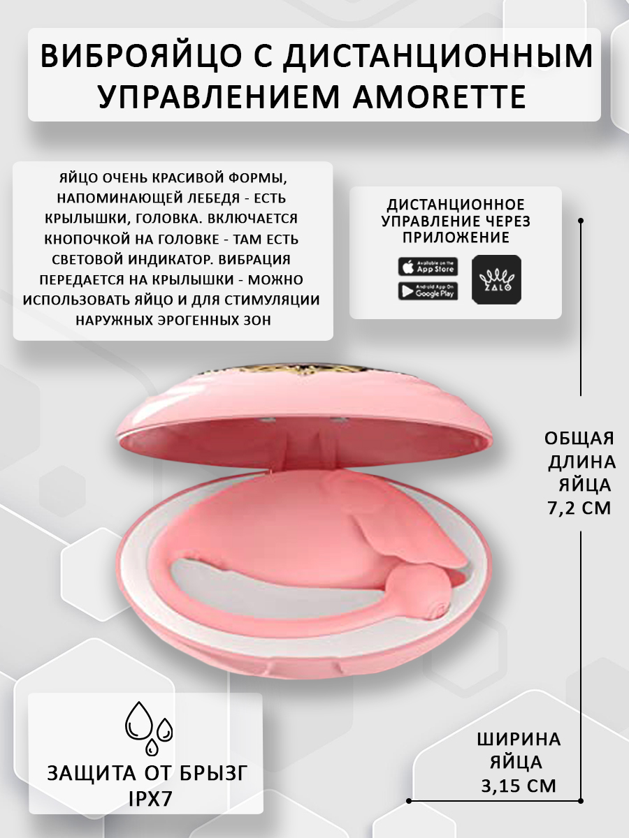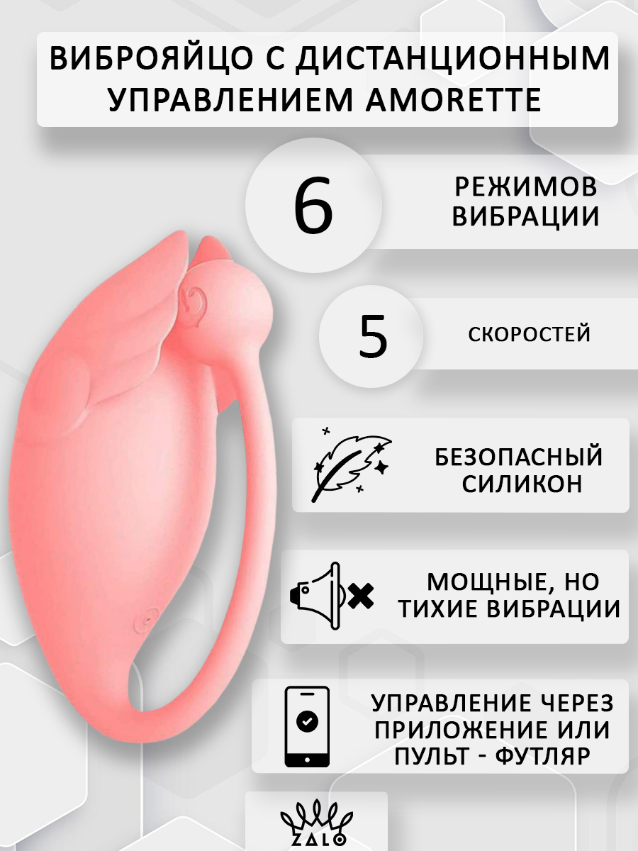 Zalo Amorette - это уникальное виброяйцо с дистанционным пультом управления! Почему уникальное? Да вы только посмотрите на него! На этот невероятный, продуманный дизайн и обилие функций!