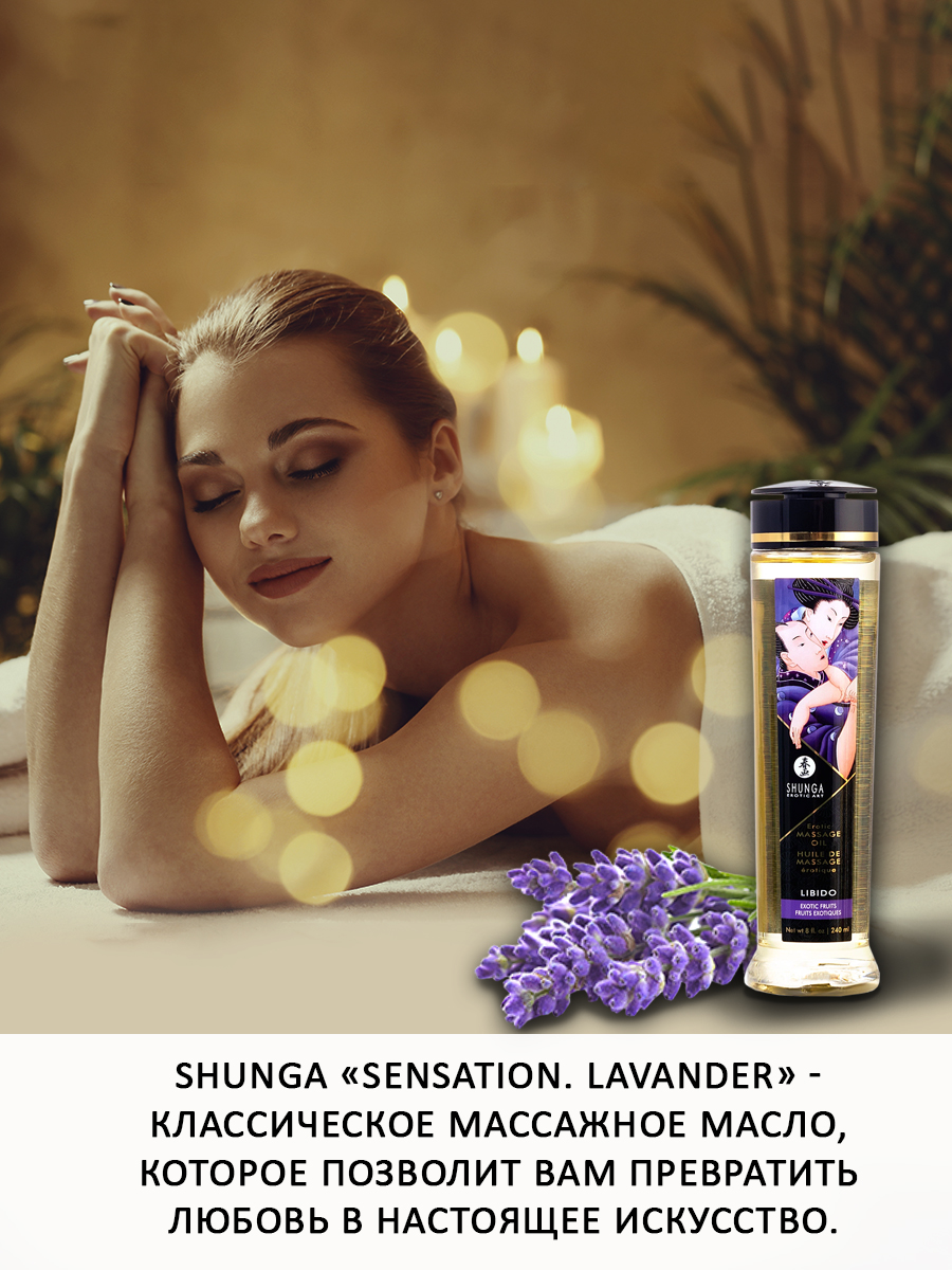 Shunga «SENSATION. Lavander» - классическое массажное масло, которое позволит Вам превратить любовь в настоящее искусство.