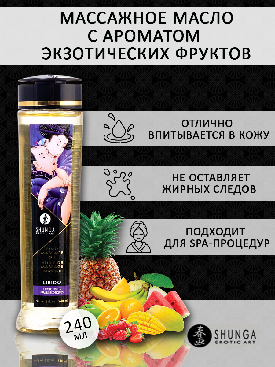 Shunga «LIBIDO. Exotic fruits» - классическое массажное масло, которое позволит Вам превратить любовь в настоящее искусство.