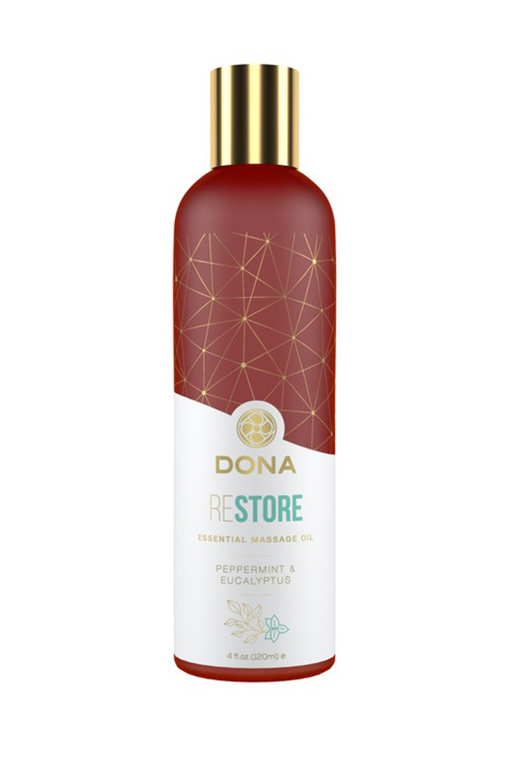 Отдайтесь наслаждению вместе с массажным маслом Dona Restore Peppermint & Eucalyptus!
