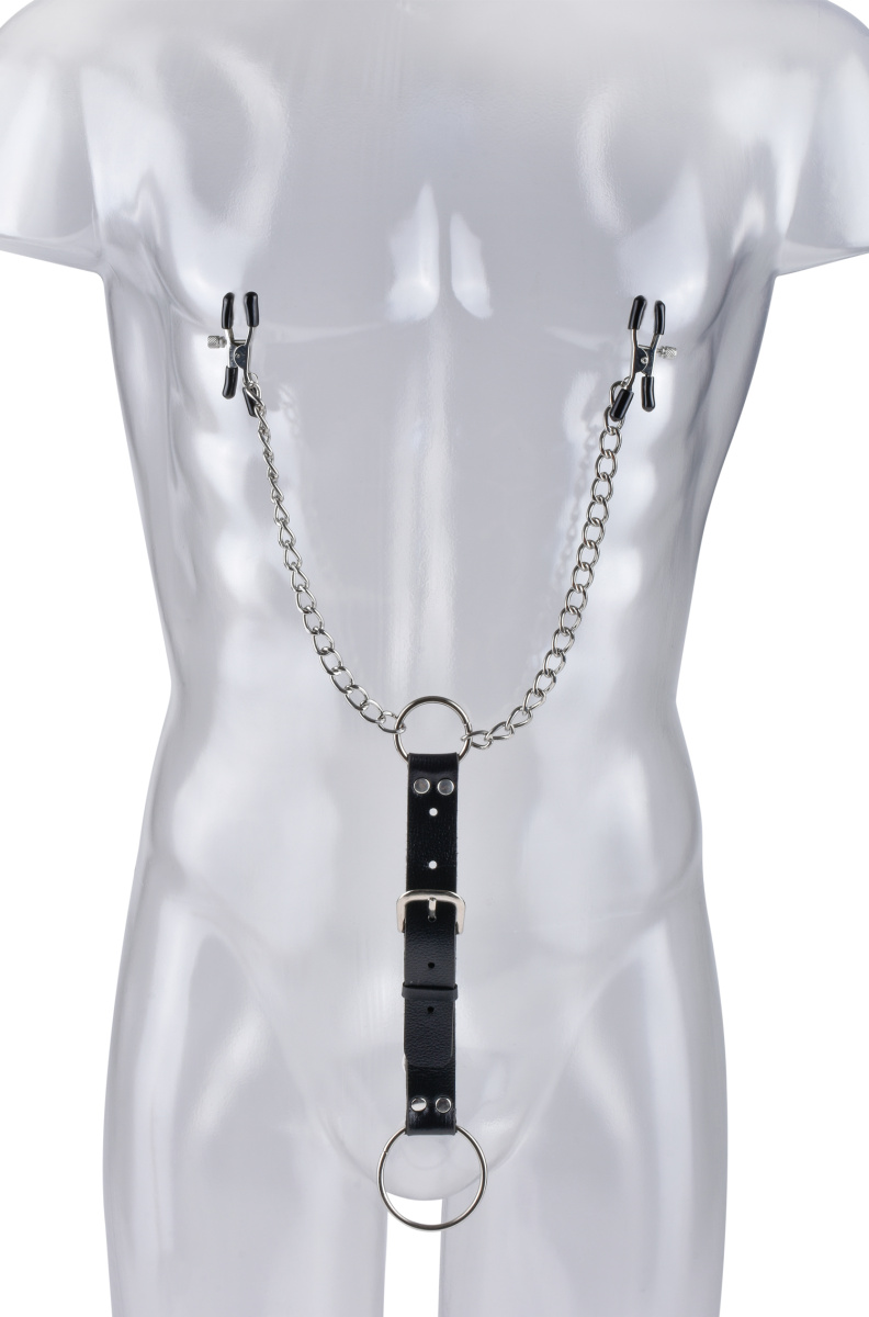 Мужской аксессуар из коллекции Fetish Fantasy был создан для того, чтобы любые горячие фантазии могли воплотиться в реальность! Он состоит из зажимов на соски и кольца для пениса, которые соединены между собой цепочками и ремнем. Изделие придется по душе любителям БДСМ, а также тем, кто давно хотел внести разнообразие в свою сексуальную жизнь.
